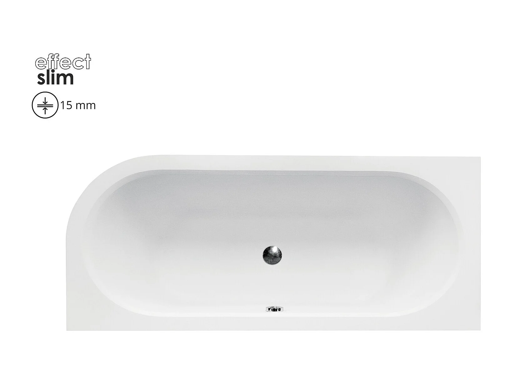 Baignoire asymétrique 160x75 Droite AVITA SLIM acrylique blanc, sans Habillage + Pieds + Vidage à chromé