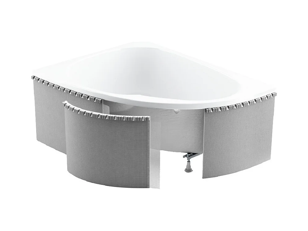 Baignoire asymétrique 150x75 Gauche AVITA SLIM acrylique blanc + Habillage en polystyrène (4 cm) + Pieds + Vidage à chromé