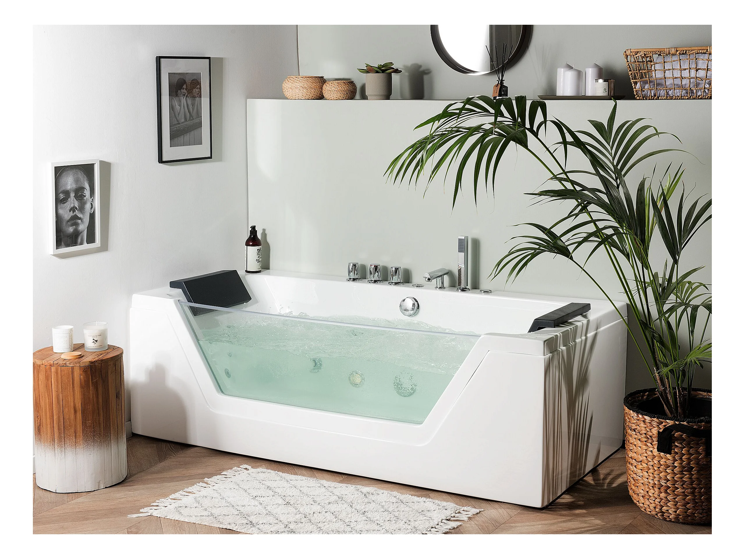 Baignoire d'angle à remous avec LED SAMANA 153 x 71 cm Blanc