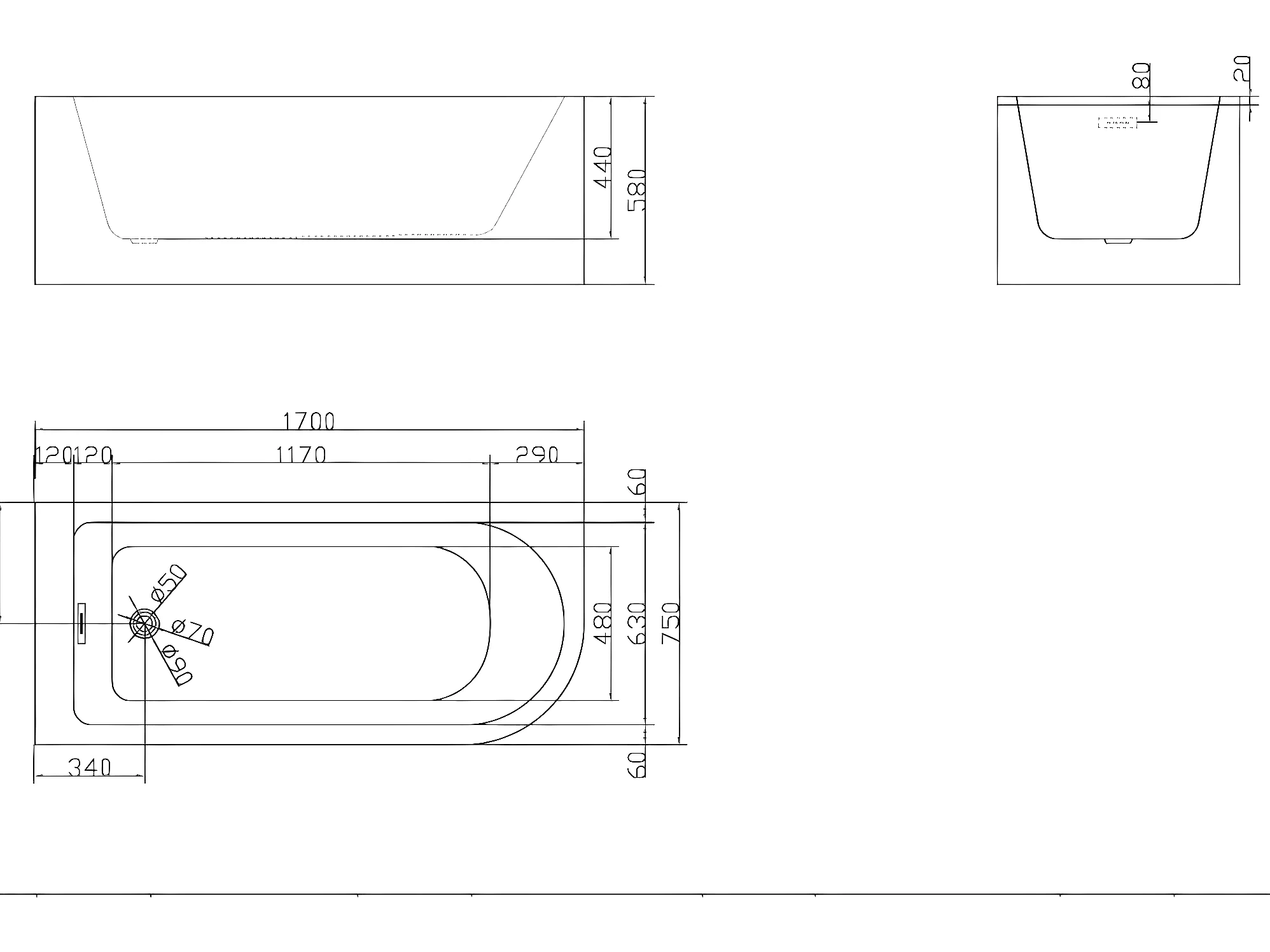 Baignoire d'angle - 240L - 170 x 75 x 58 cm - Blanche - Angle droit - ANIKA