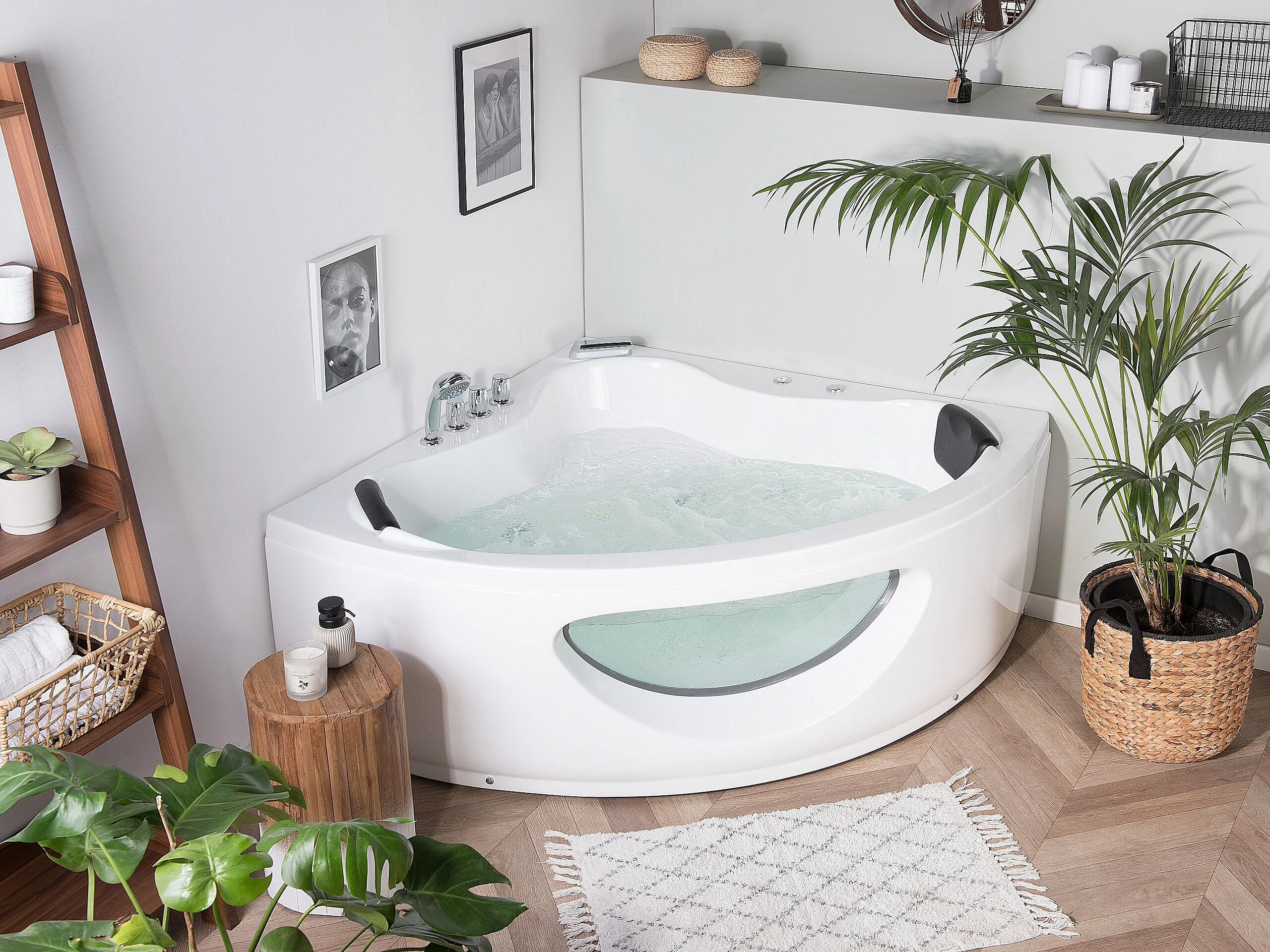 Baignoire d'angle à remous avec LED TOCOA 205 x 146 cm Blanc