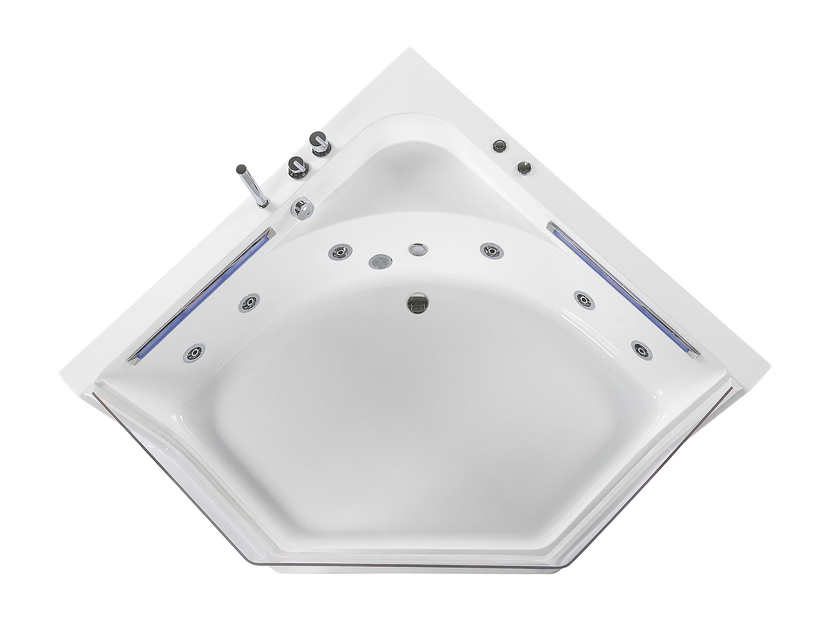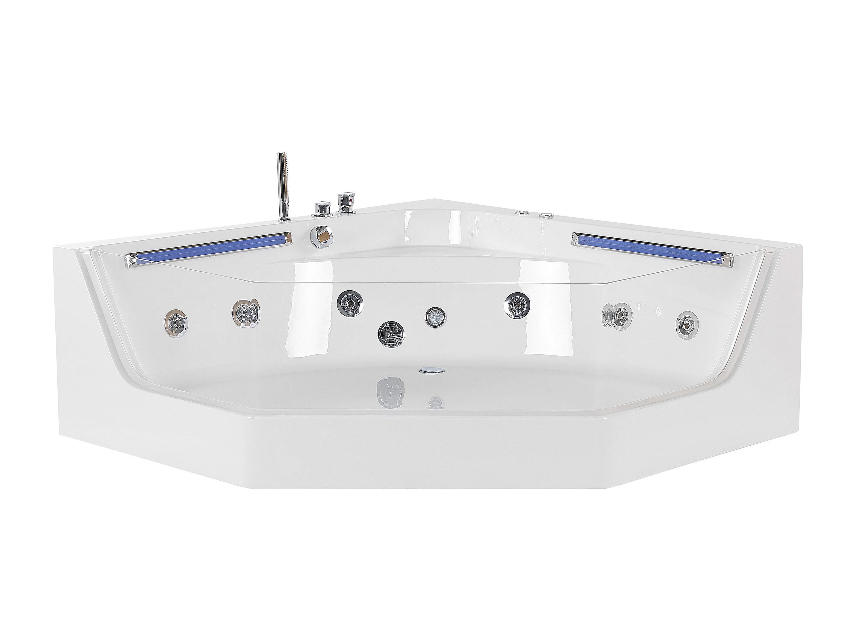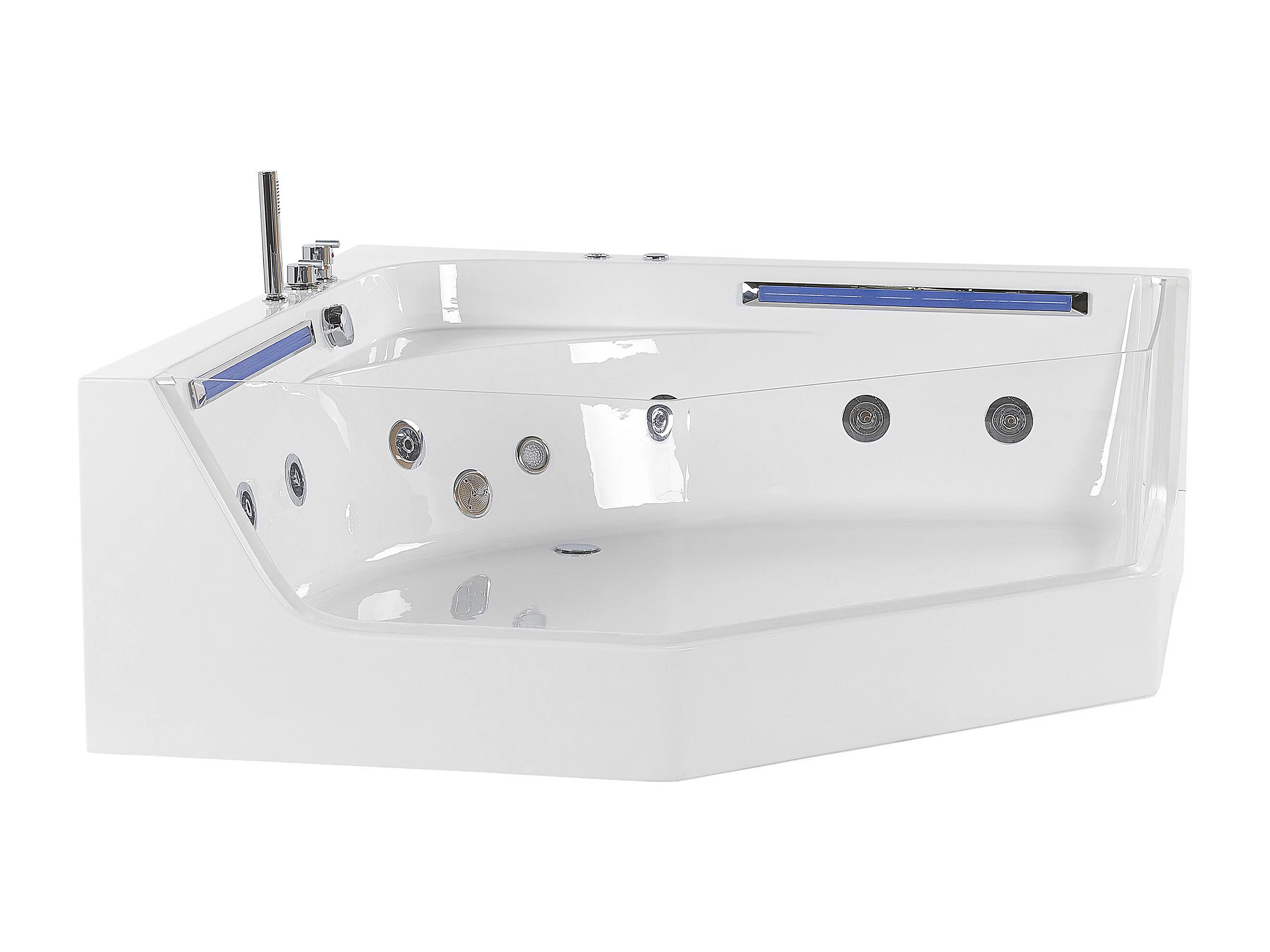 Baignoire d'angle à remous avec LED CACERES 211 x 150 cm Blanc