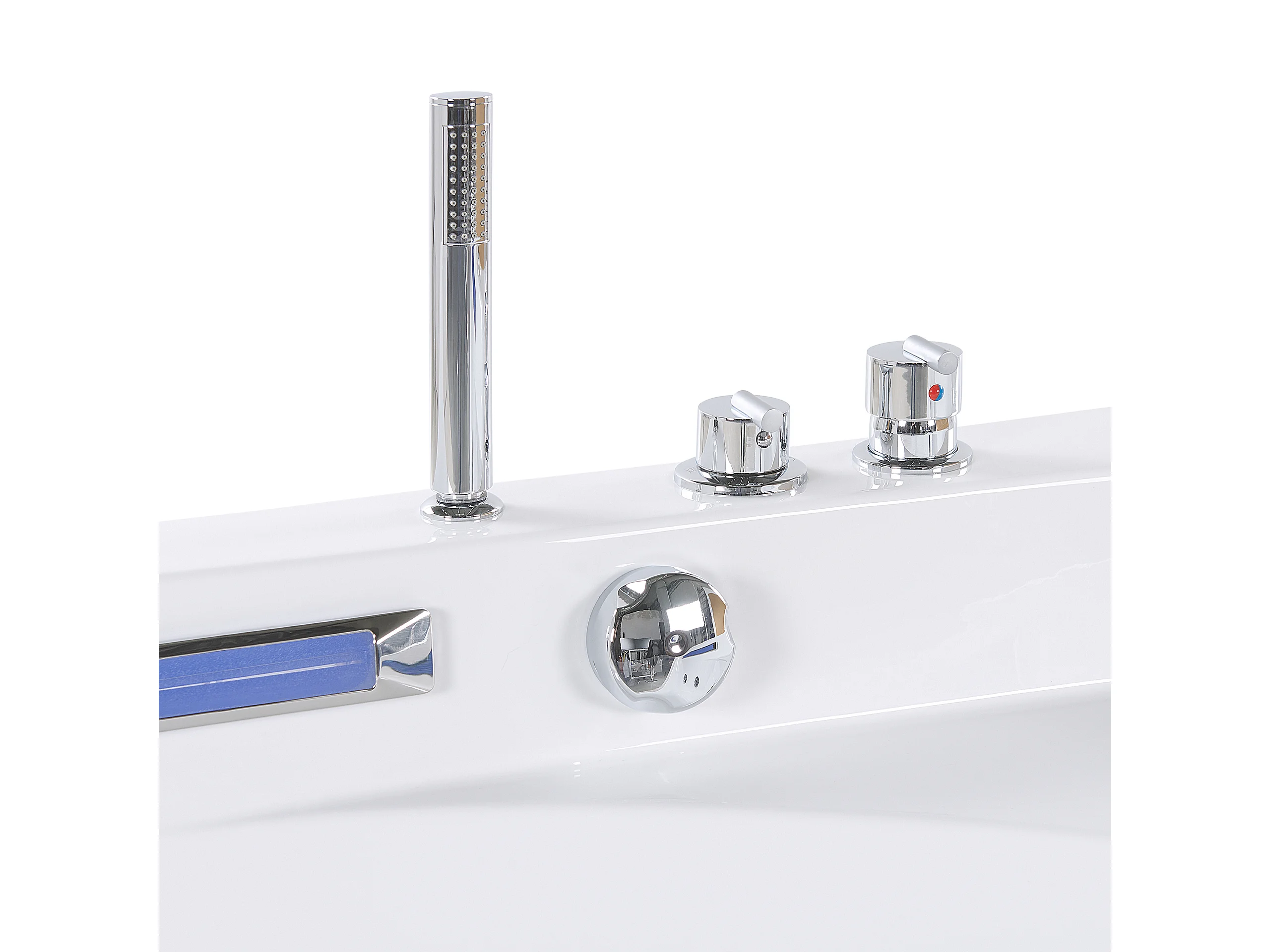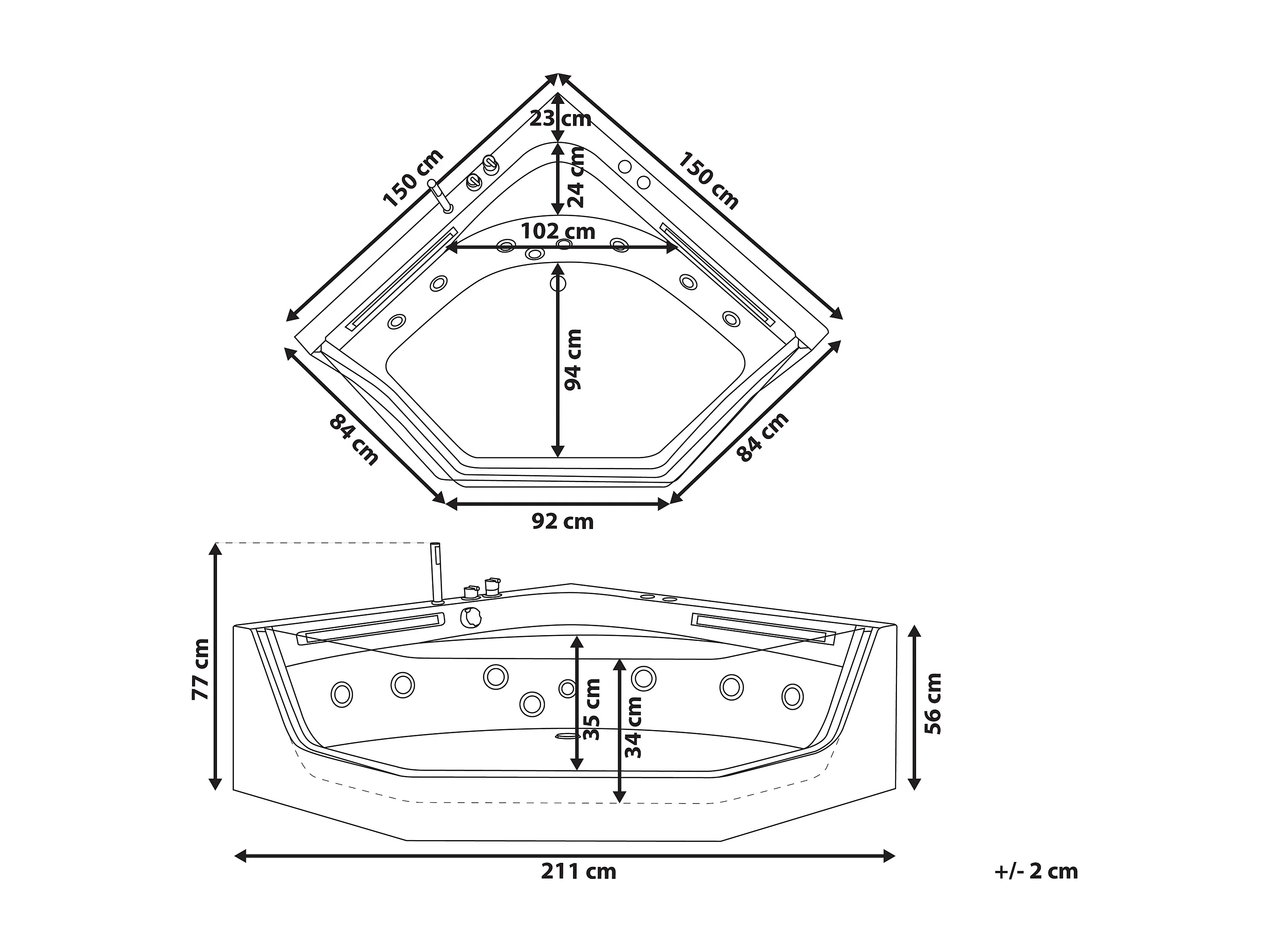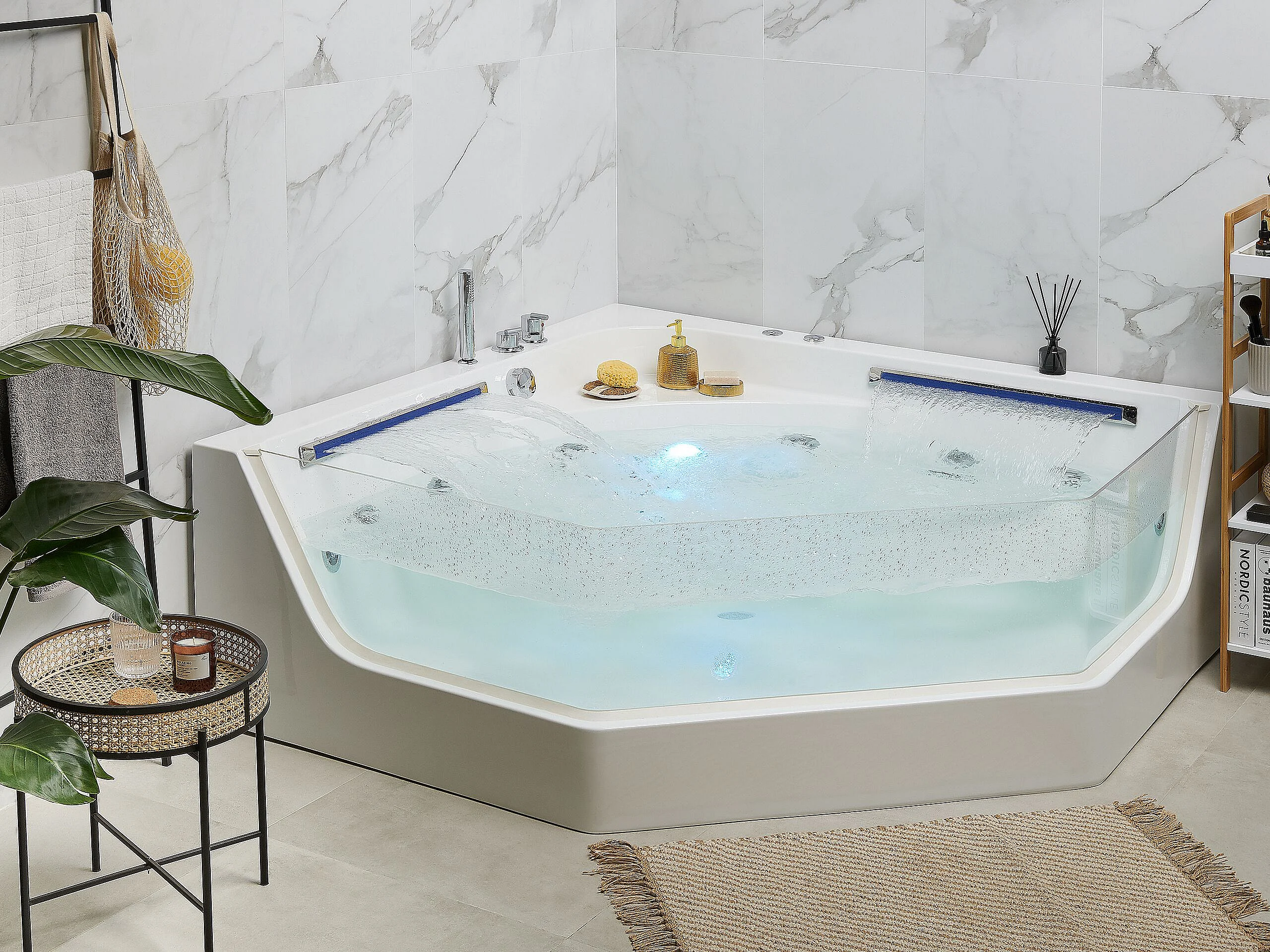 Baignoire d'angle à remous avec LED CACERES 211 x 150 cm Blanc