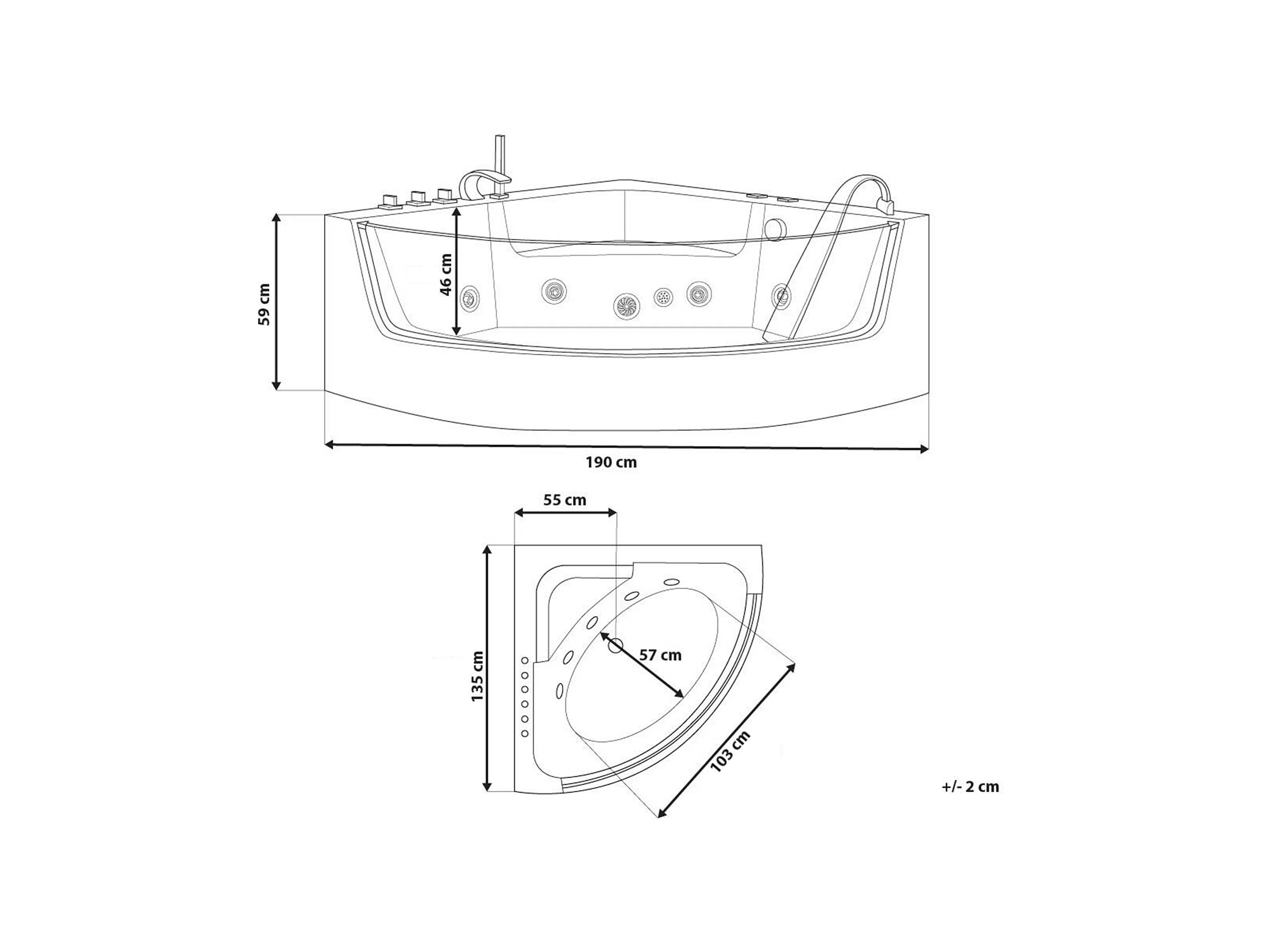 Baignoire d'angle à remous avec LED MARINA 190 x 135 cm Blanc