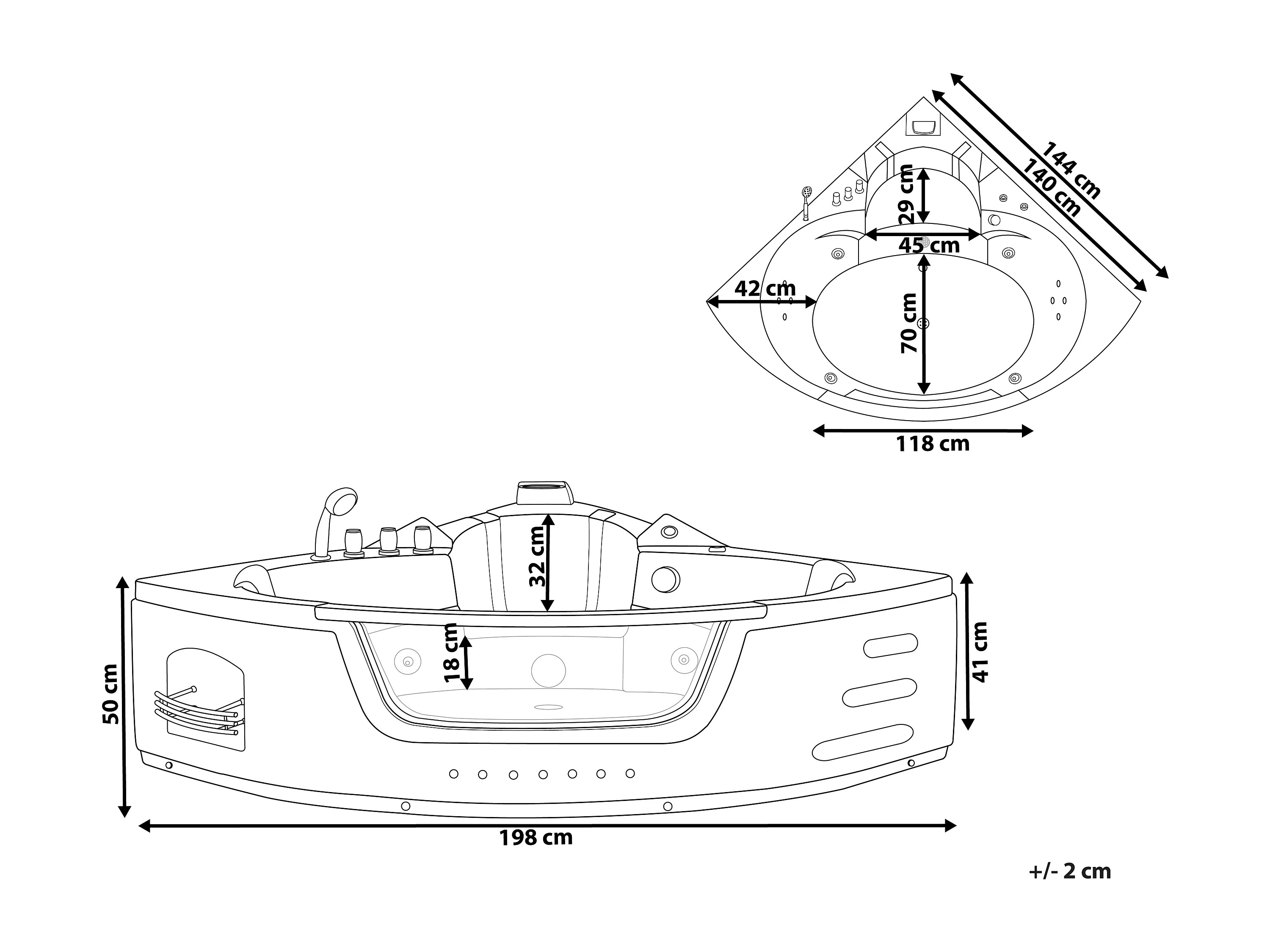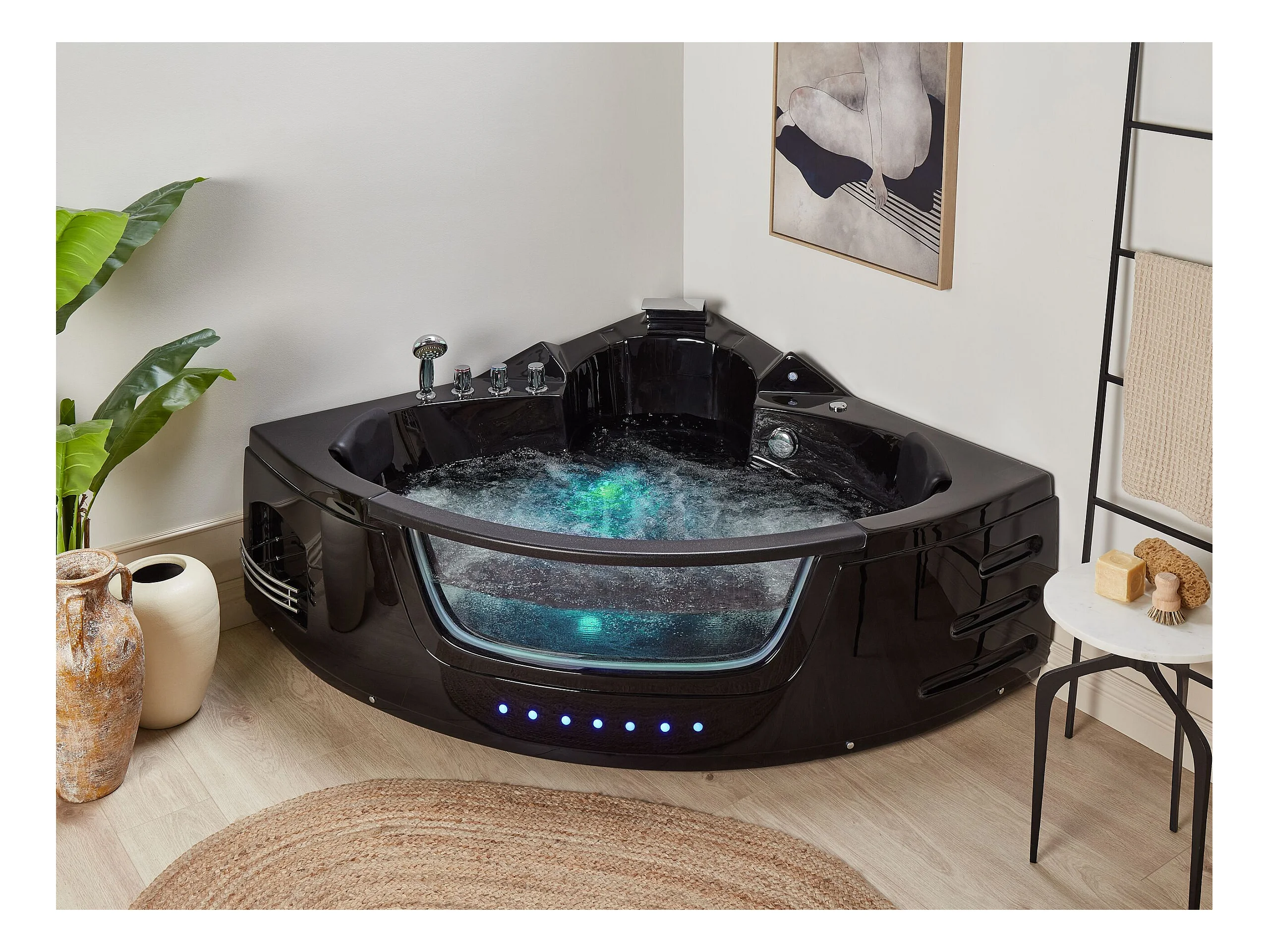 Baignoire d'angle à remous avec LED MARTINICA 198 x 144 cm Noir