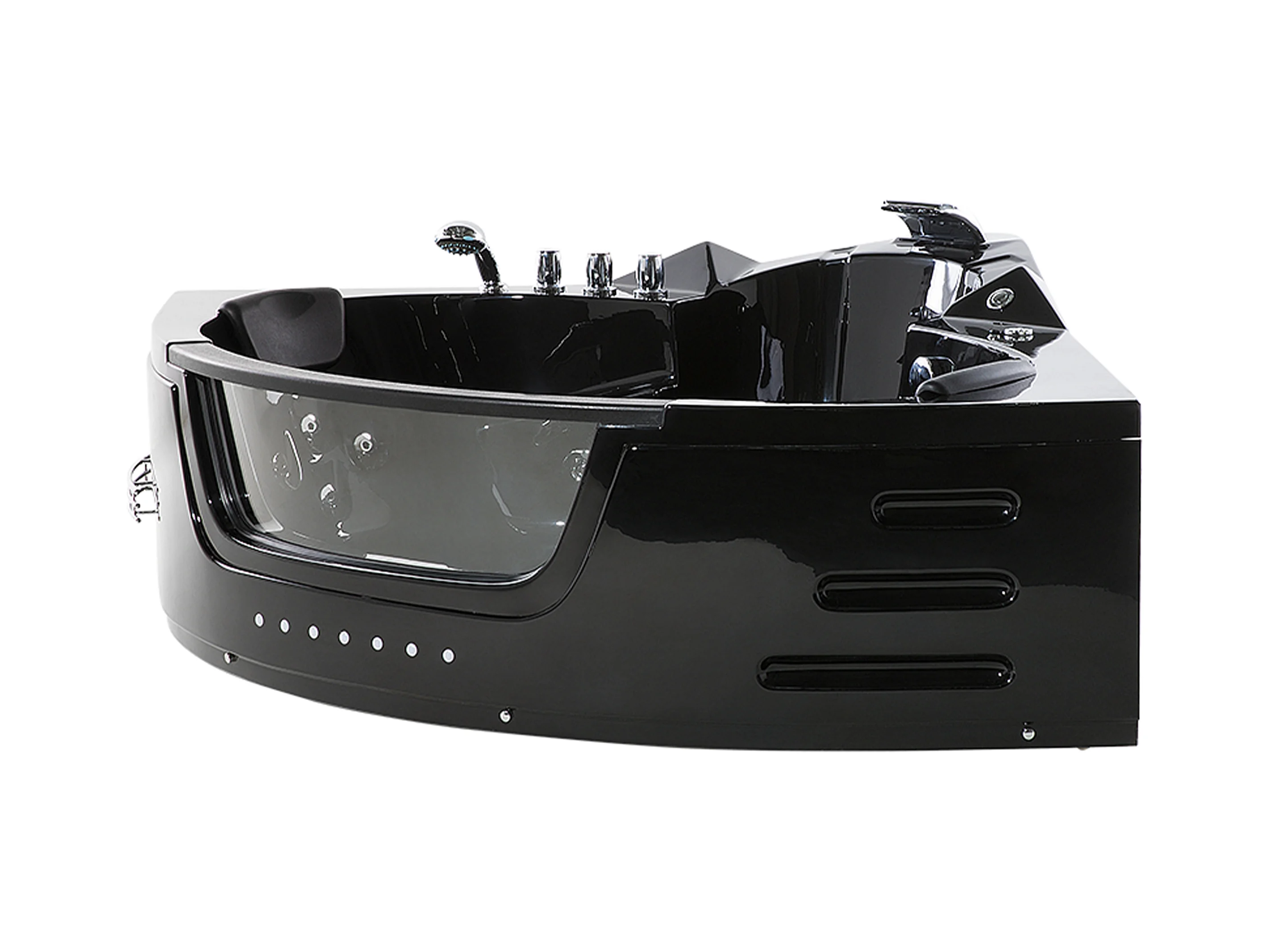 Baignoire d'angle à remous avec LED PARADISO Côté droite 158 x 113 cm Noir