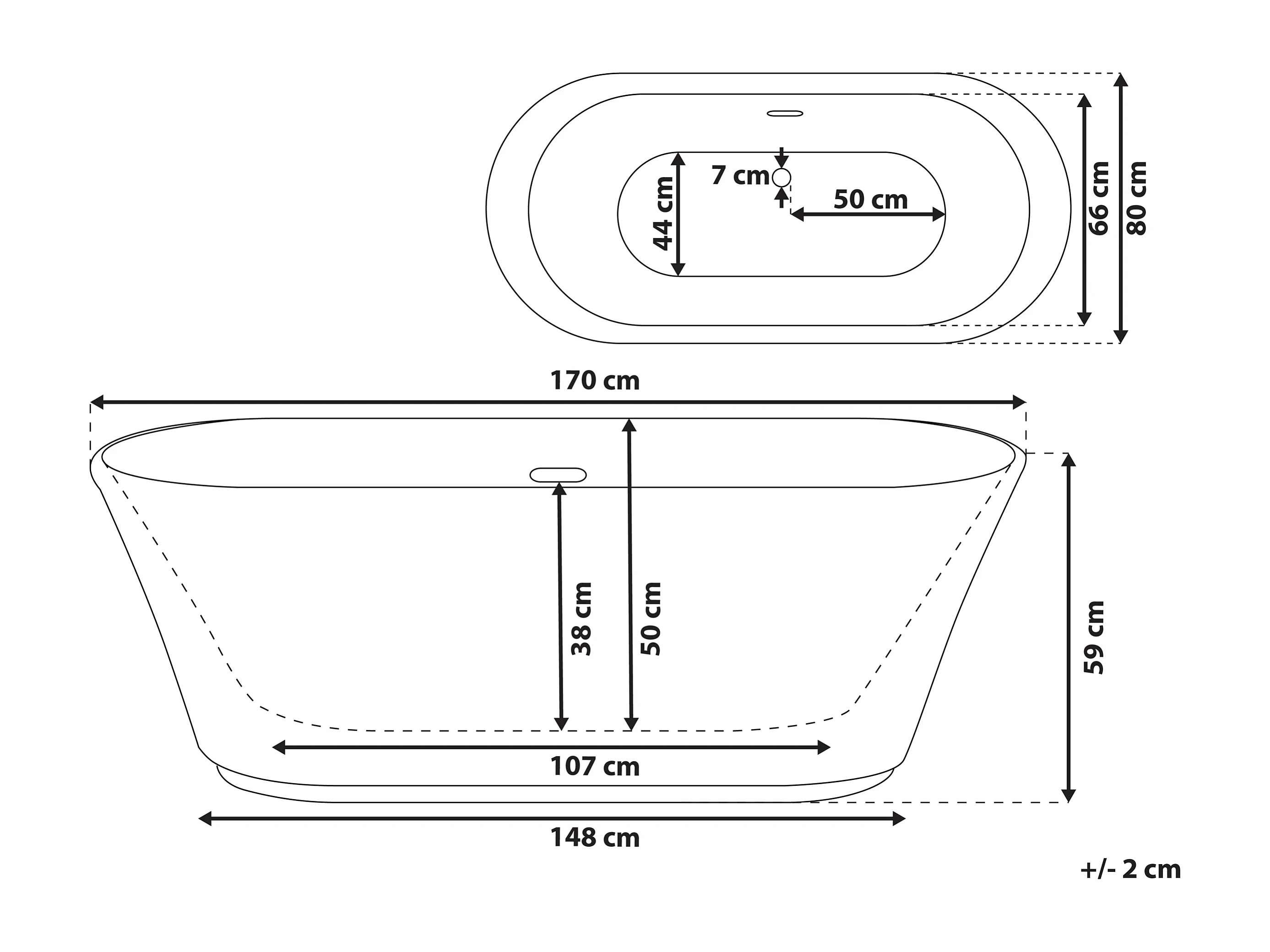 Baignoire îlot OVALLE 170 x 80 cm Blanc