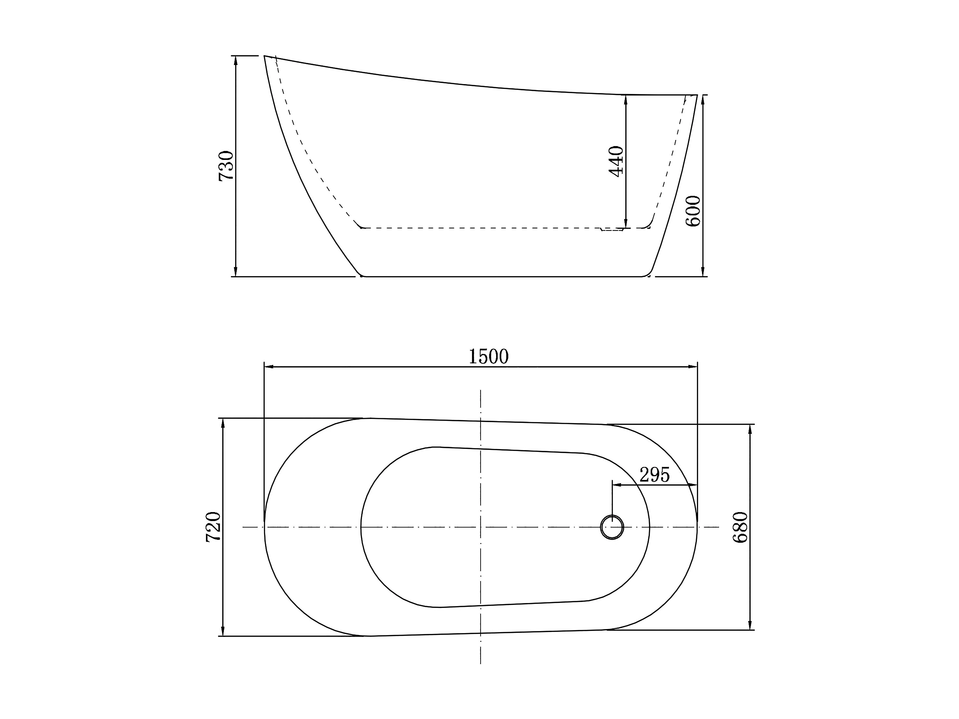 Baignoire îlot design en acrylique - 230L - 150 x 72 x 73cm - Confort ergonomique et élégance moderne - avec Bonde et trop plein