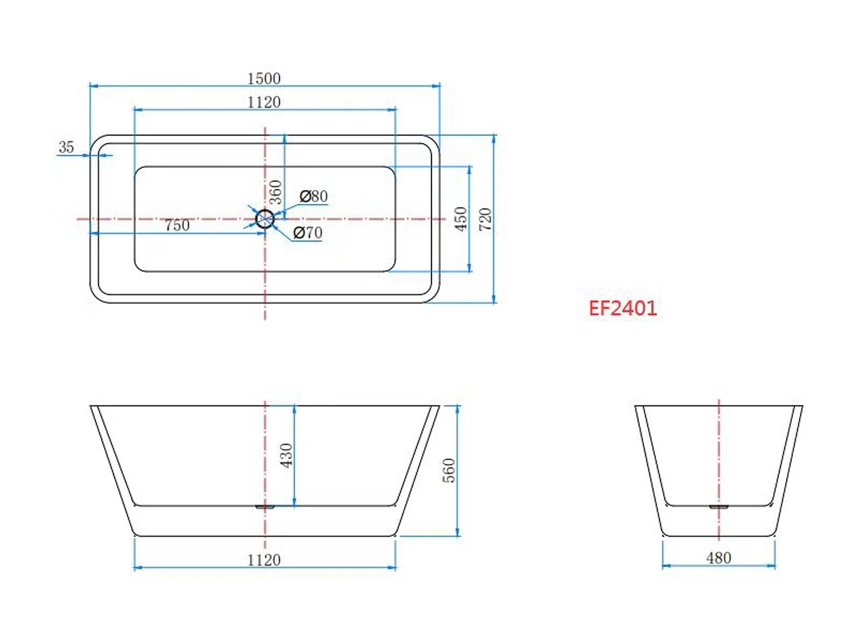 Baignoire îlot design en acrylique - 250L - 150 x 72 x 56cm - Confort ergonomique et élégance moderne - avec Bonde et trop plein