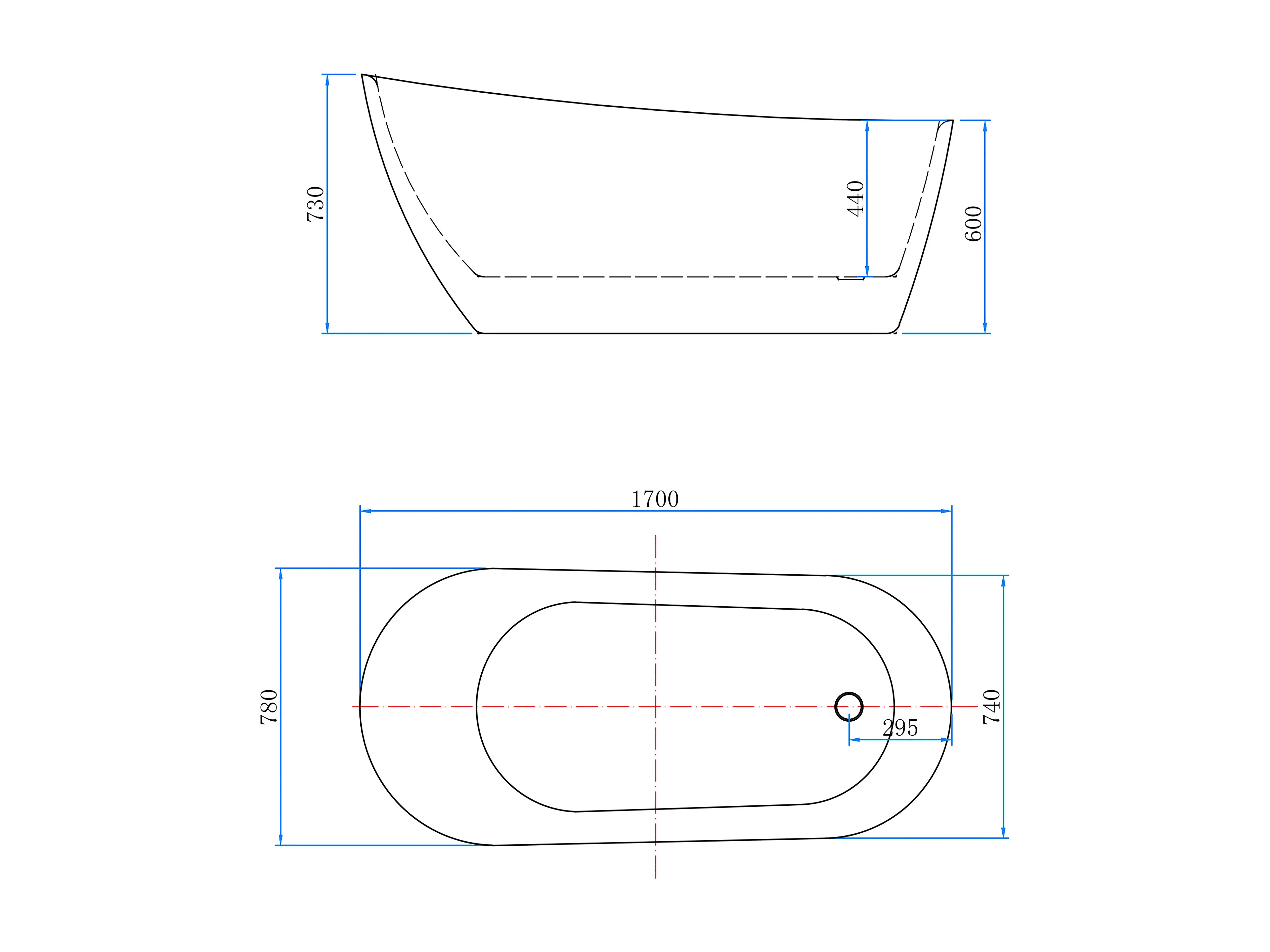 Baignoire îlot design en acrylique - 280L - 170 x 78 x 73cm - Confort ergonomique et élégance moderne - avec Bonde et trop plein