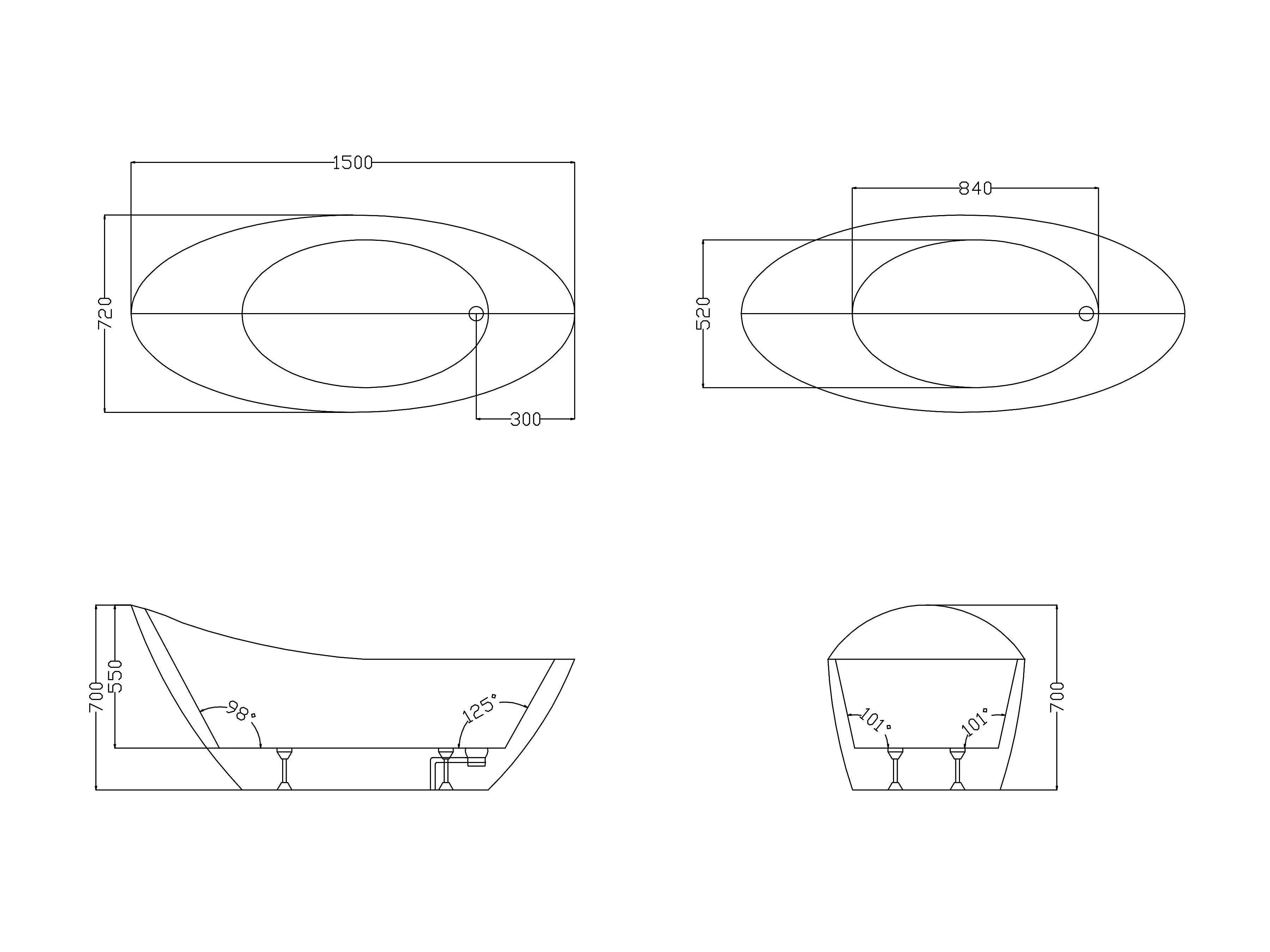Baignoire îlot NATALIA avec robinetterie - 220L - L150 x P75 x H70cm - Noire