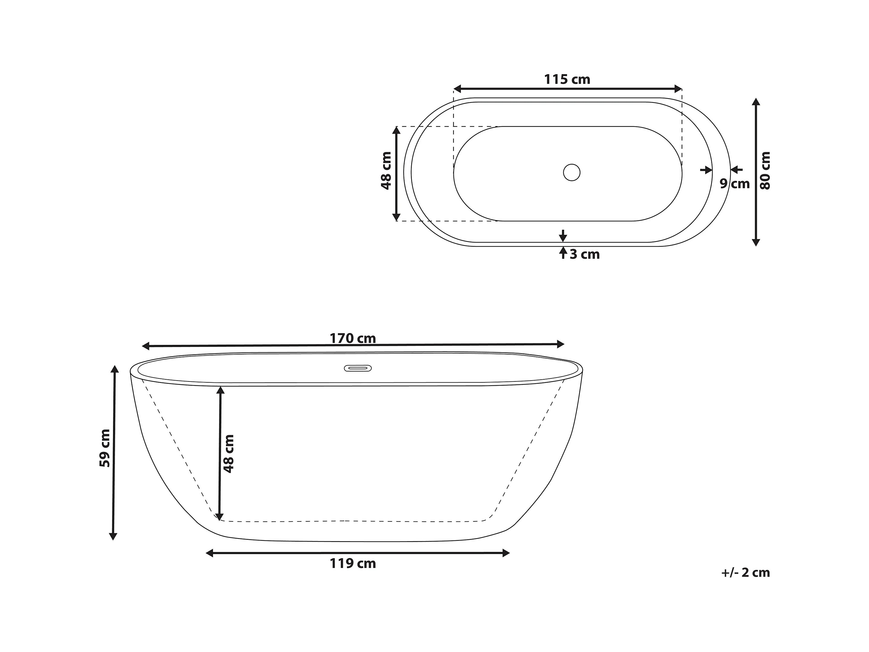 Baignoire îlot ROTSO 170 x 80 cm Noir/blanc