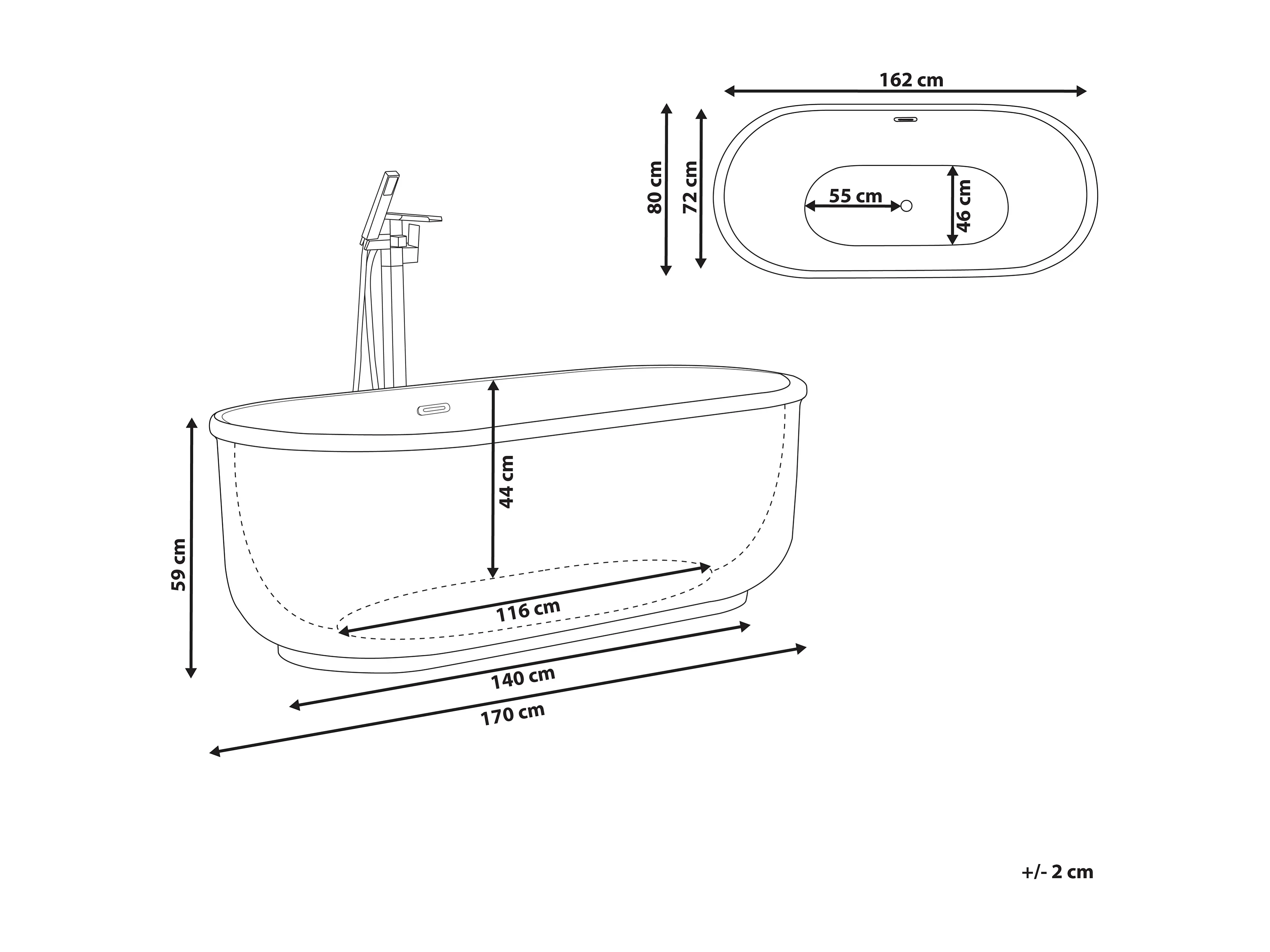Baignoire îlot PINEL 170 x 80 cm Argenté