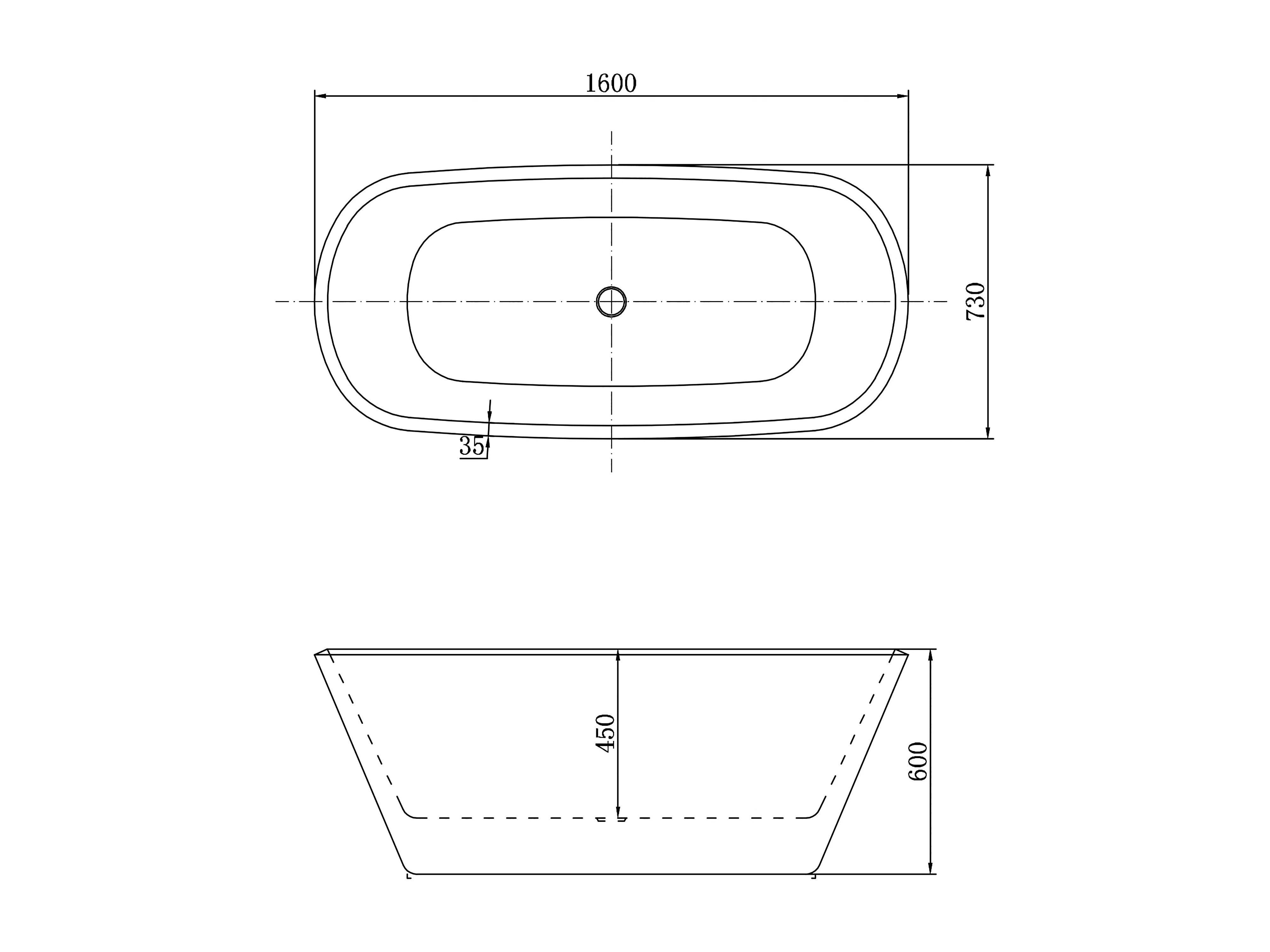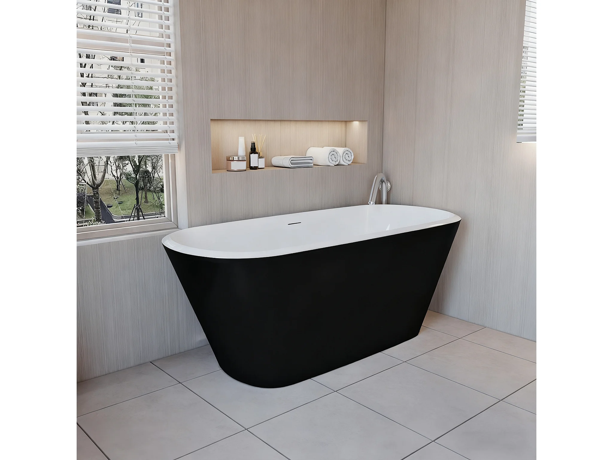 Baignoire îlot ovale bicolore - 260L - 160x73x60 cm - intérieur blanc - extérieur noir mat - Design moderne en acrylique