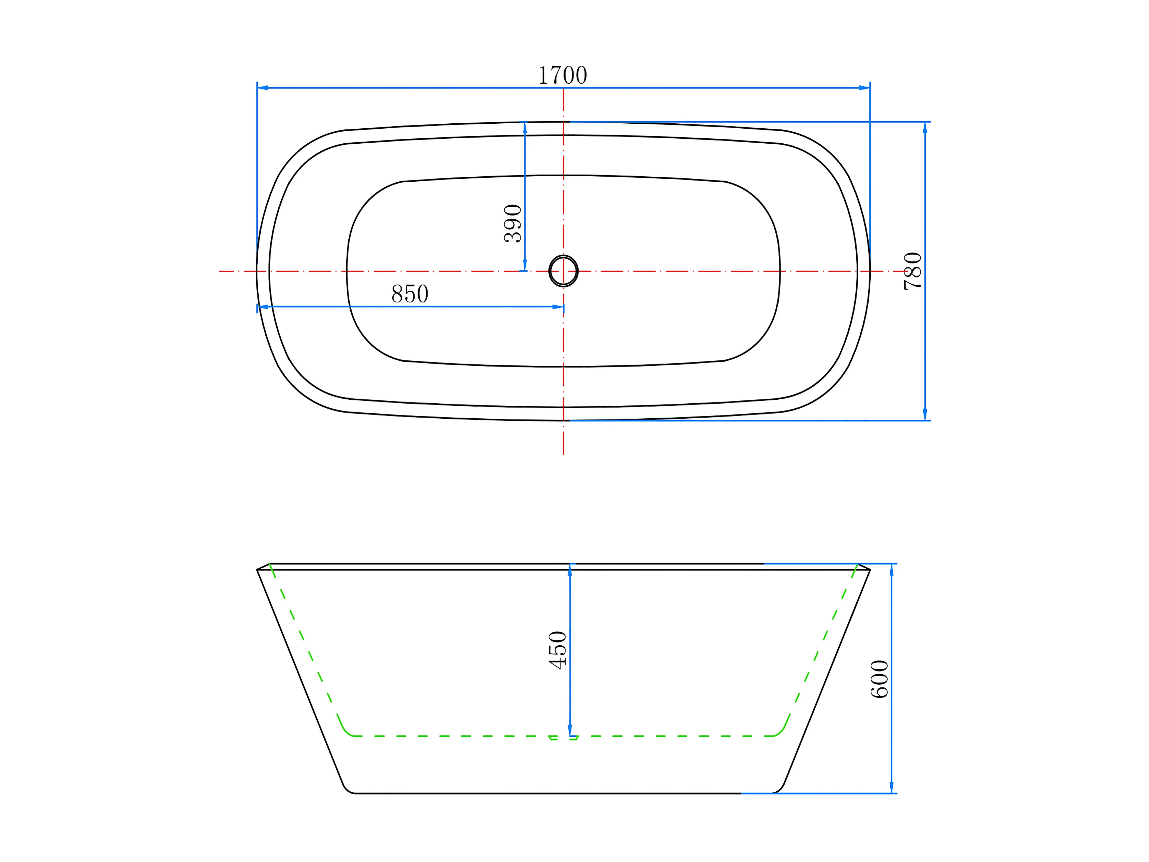 Baignoire îlot ovale bicolore - 280L - 170x78x60 cm - intérieur blanc + extérieur noir mat - Design moderne en acrylique