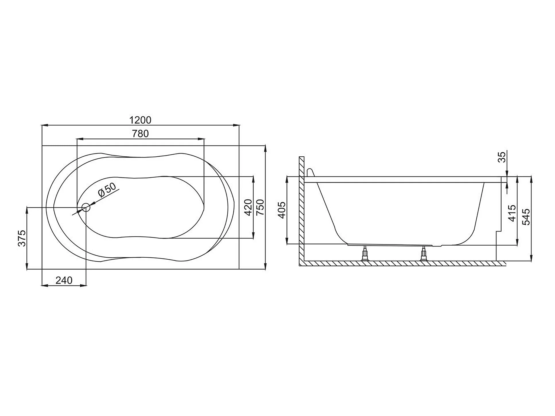 Baignoire rectangulaire 120x75 GRACJA acrylique blanc + Habillage en polystyrène + Pieds + Vidage à chromé