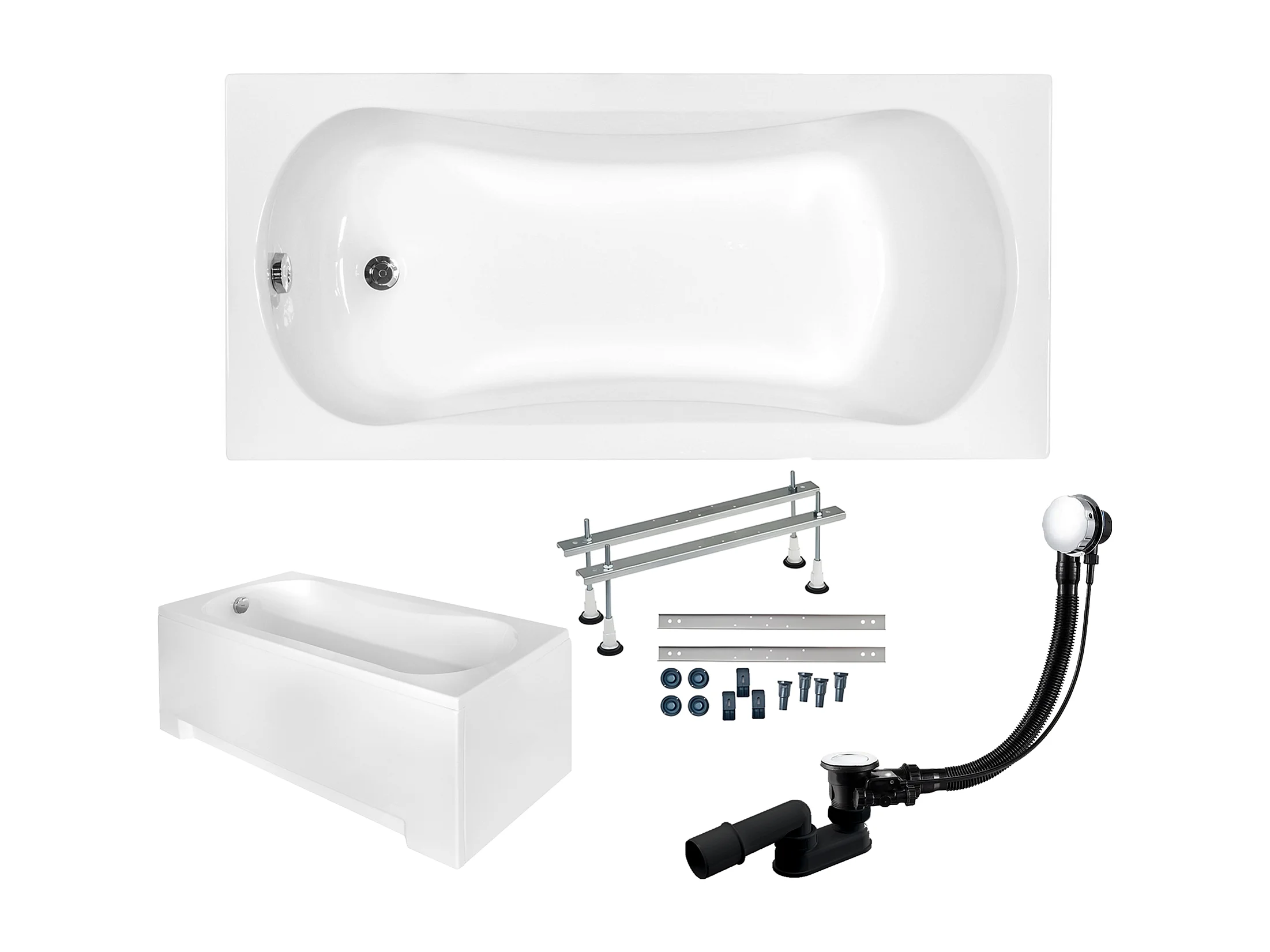 Baignoire rectangulaire 150x70 ARIA acrylique blanc + avec Tablier + Pieds + Vidage à chromé