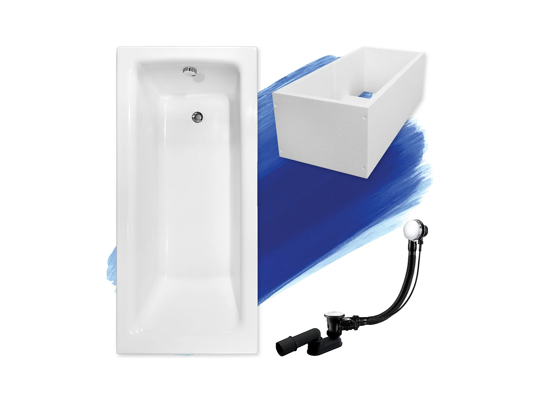 Baignoire rectangulaire 150x75 INTRICA SLIM acrylique blanc + Habillage en polystyrène (4 cm) + Pieds + Vidage à chromé