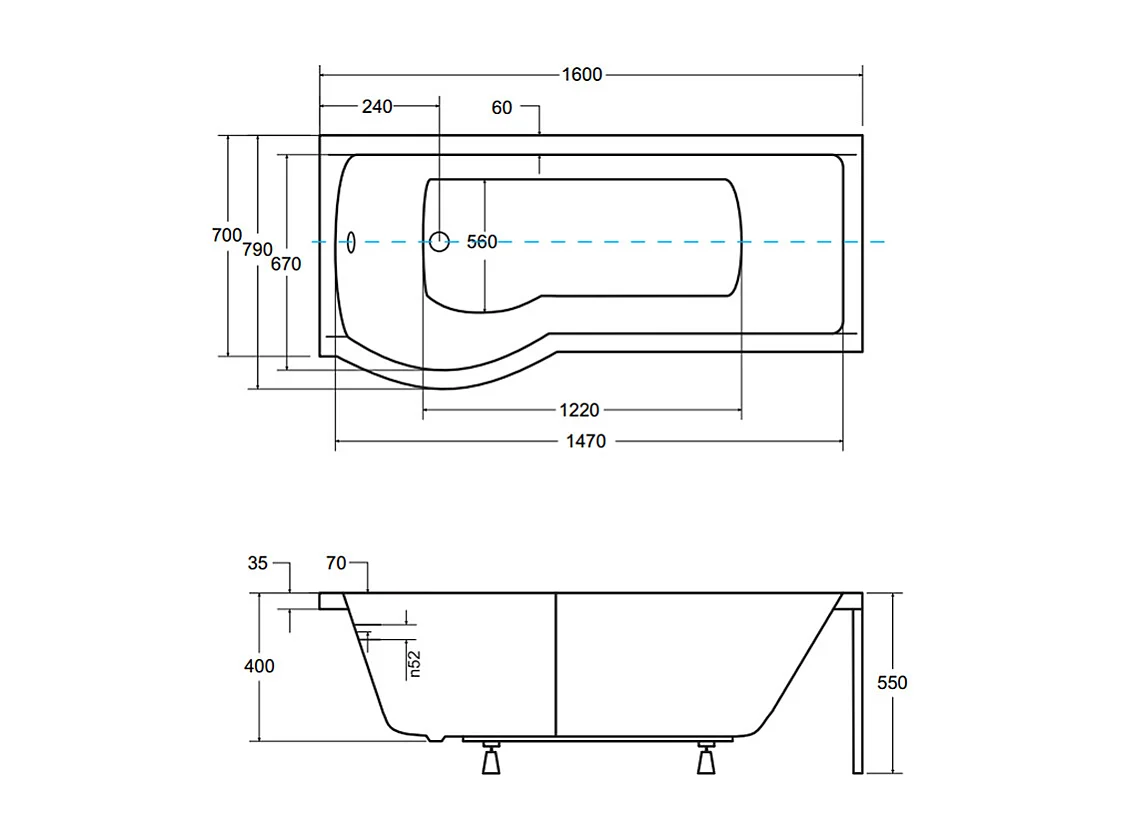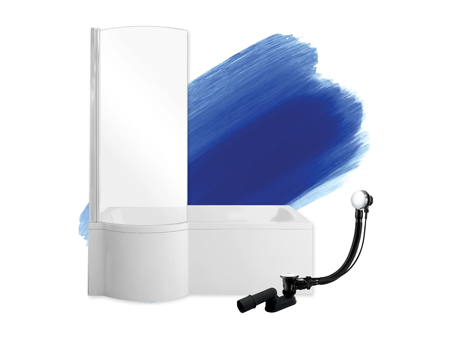 Baignoire rectangulaire 160x70 Gauche INSPIRO acrylique blanc, sans Habillage + Écran + Pieds + Vidage à chromé