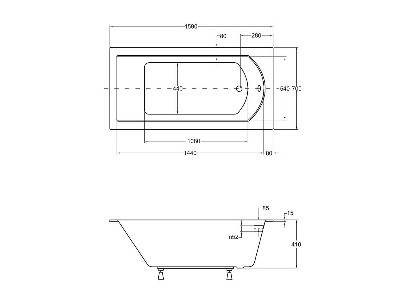 Baignoire rectangulaire 160x70 BONA acrylique blanc, sans Habillage + Pieds + Vidage à chromé