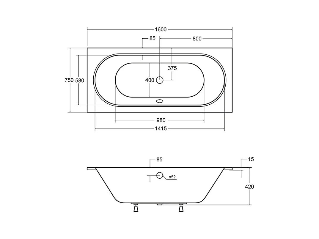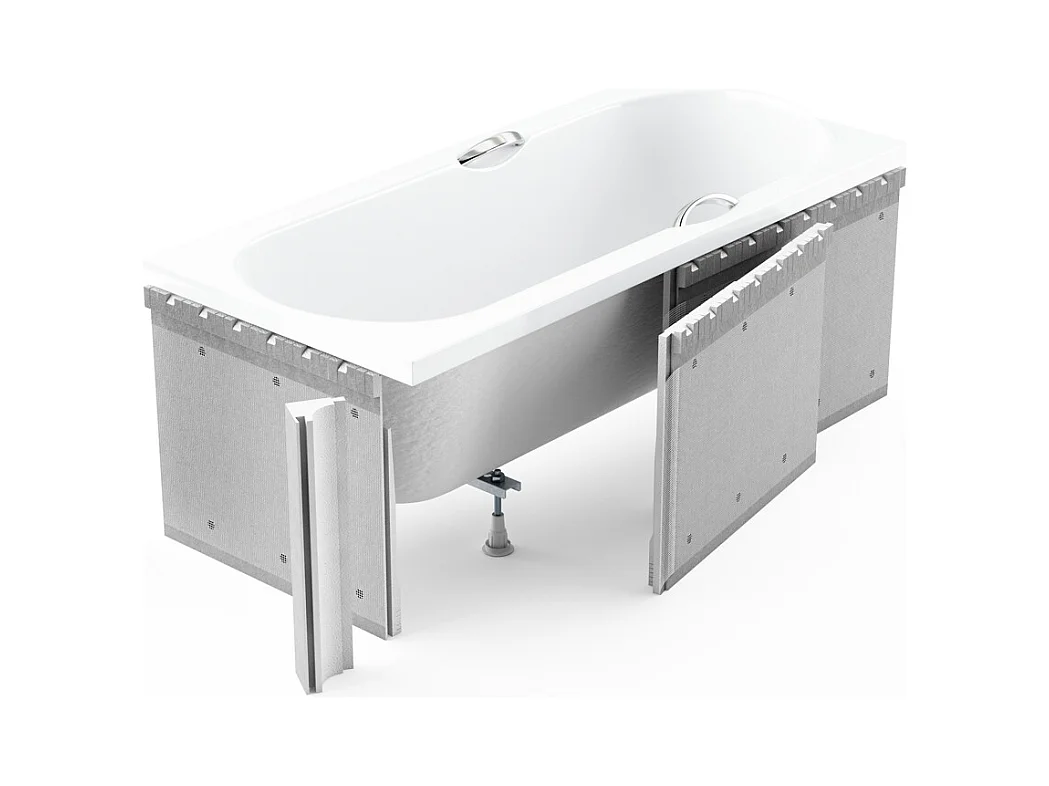 Baignoire rectangulaire 160x75 INTRICA SLIM acrylique blanc + Habillage en polystyrène (4 cm) + Pieds + Vidage à chromé