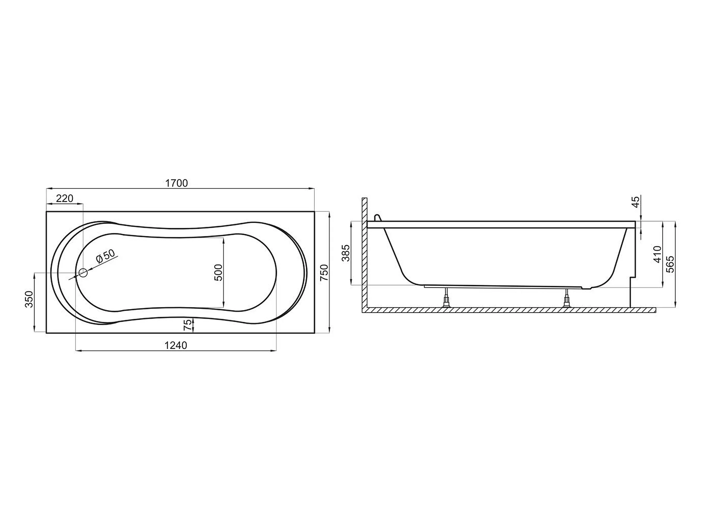 Baignoire rectangulaire 170x70 GRACJA acrylique blanc + Habillage en polystyrène + Pieds + Vidage à chromé