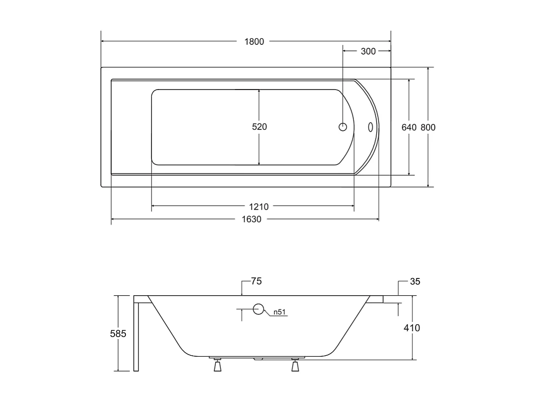 Baignoire rectangulaire 170x70 SHEA acrylique blanc + avec Tablier + Pieds + Vidage à chromé