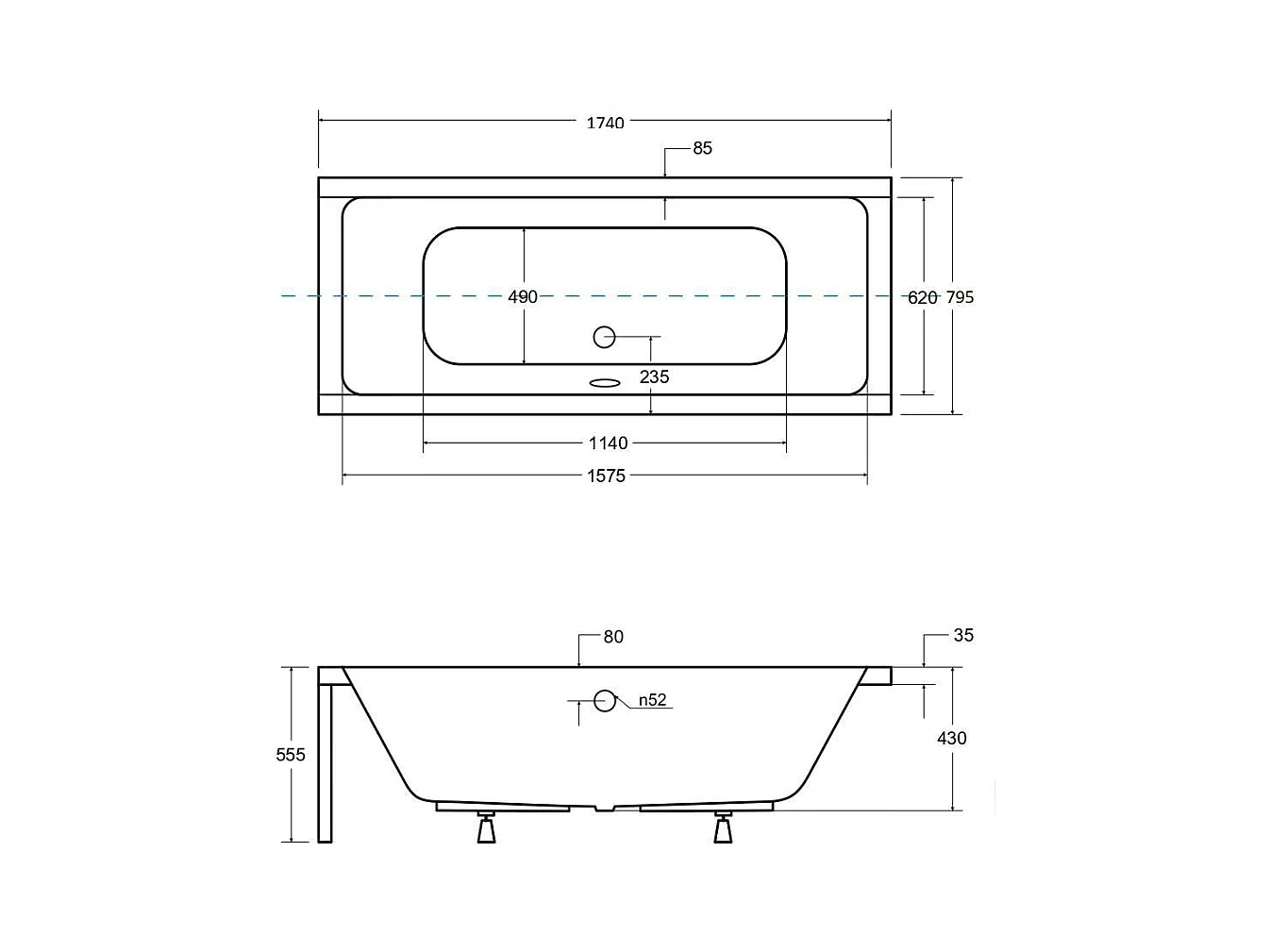 Baignoire rectangulaire 175x80 QUADRO acrylique blanc + avec Tablier + Pieds + Vidage à chromé