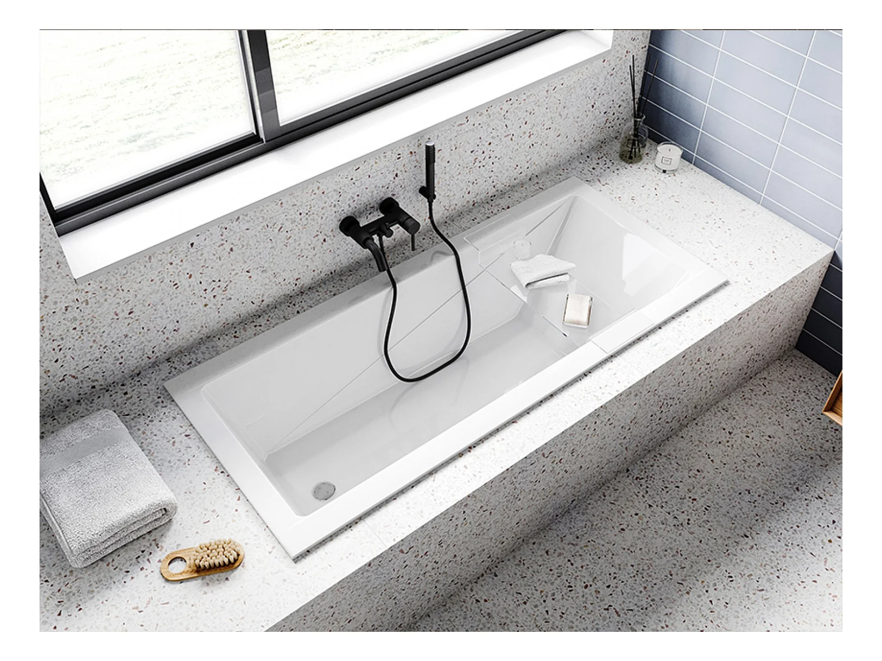 Baignoire rectangulaire 180x80 MODERN SLIM acrylique blanc + Support stabilisateur en polystyrène + Pieds + Vidage à chromé