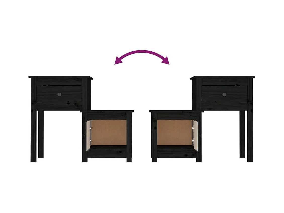 Waldoboro Table de chevet Noir 40x35x55 cm Bois de pin solide