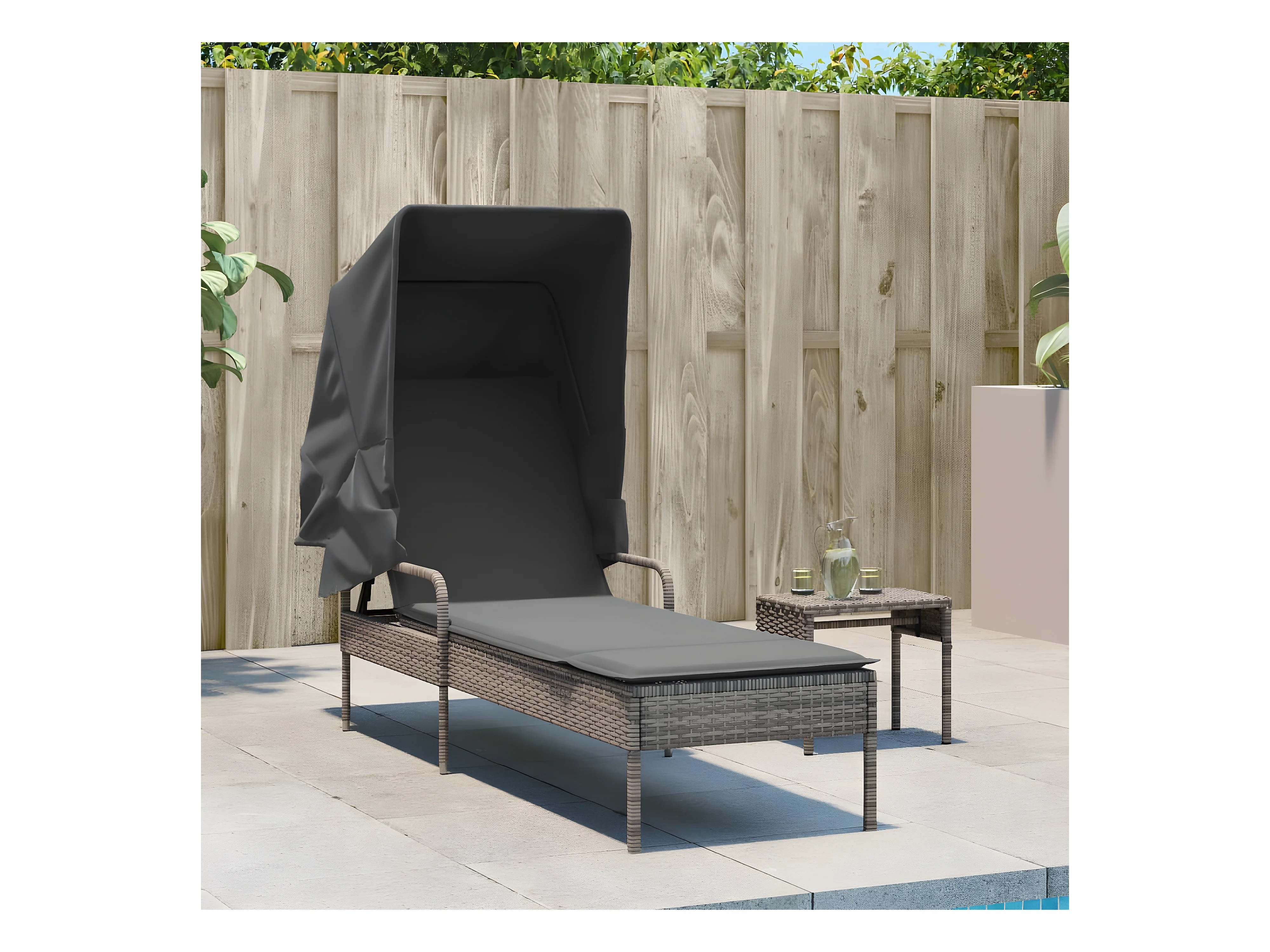 Bain de soleil avec coussin gris 63x200x81 cm résine tressée FR34898