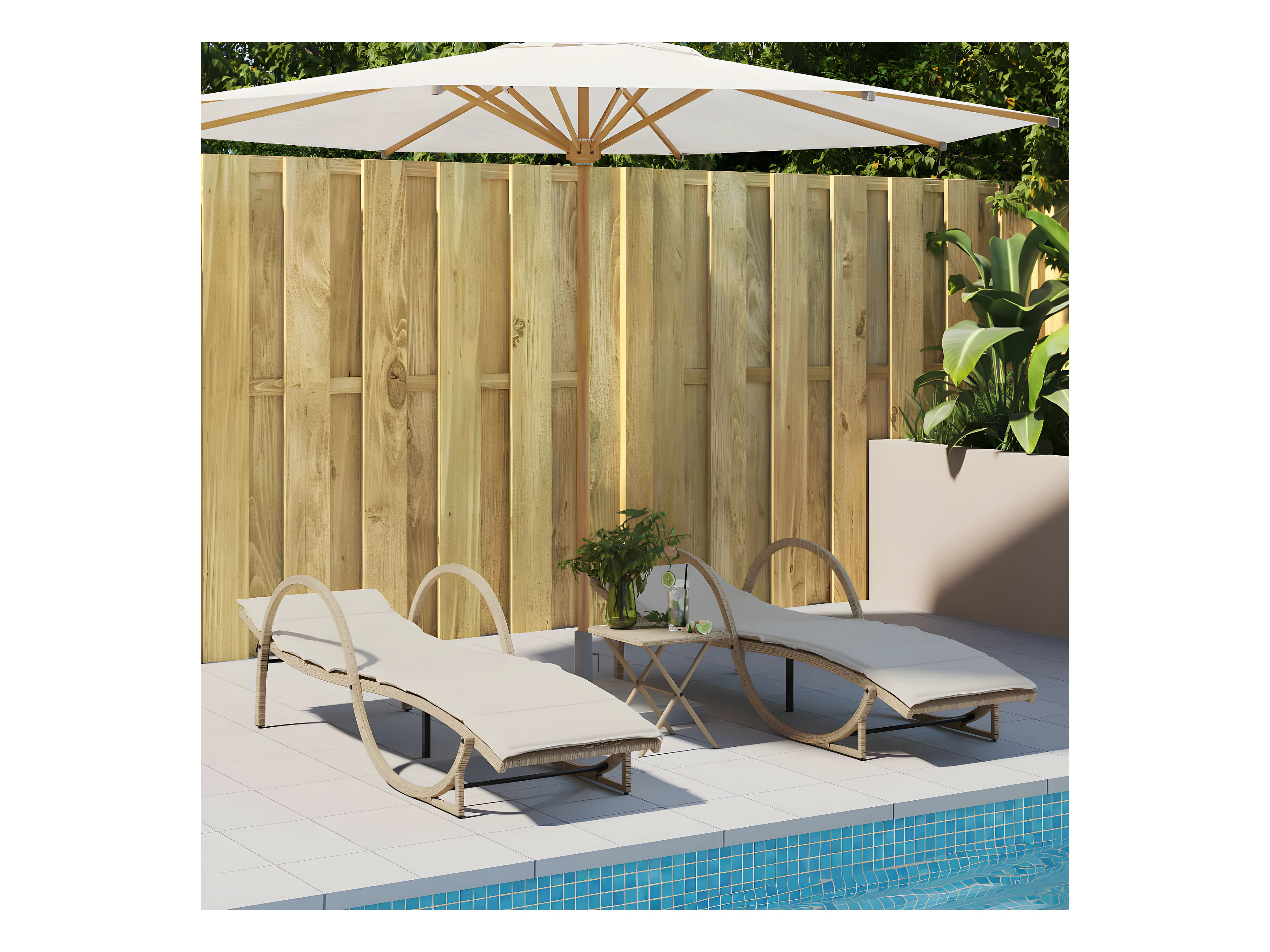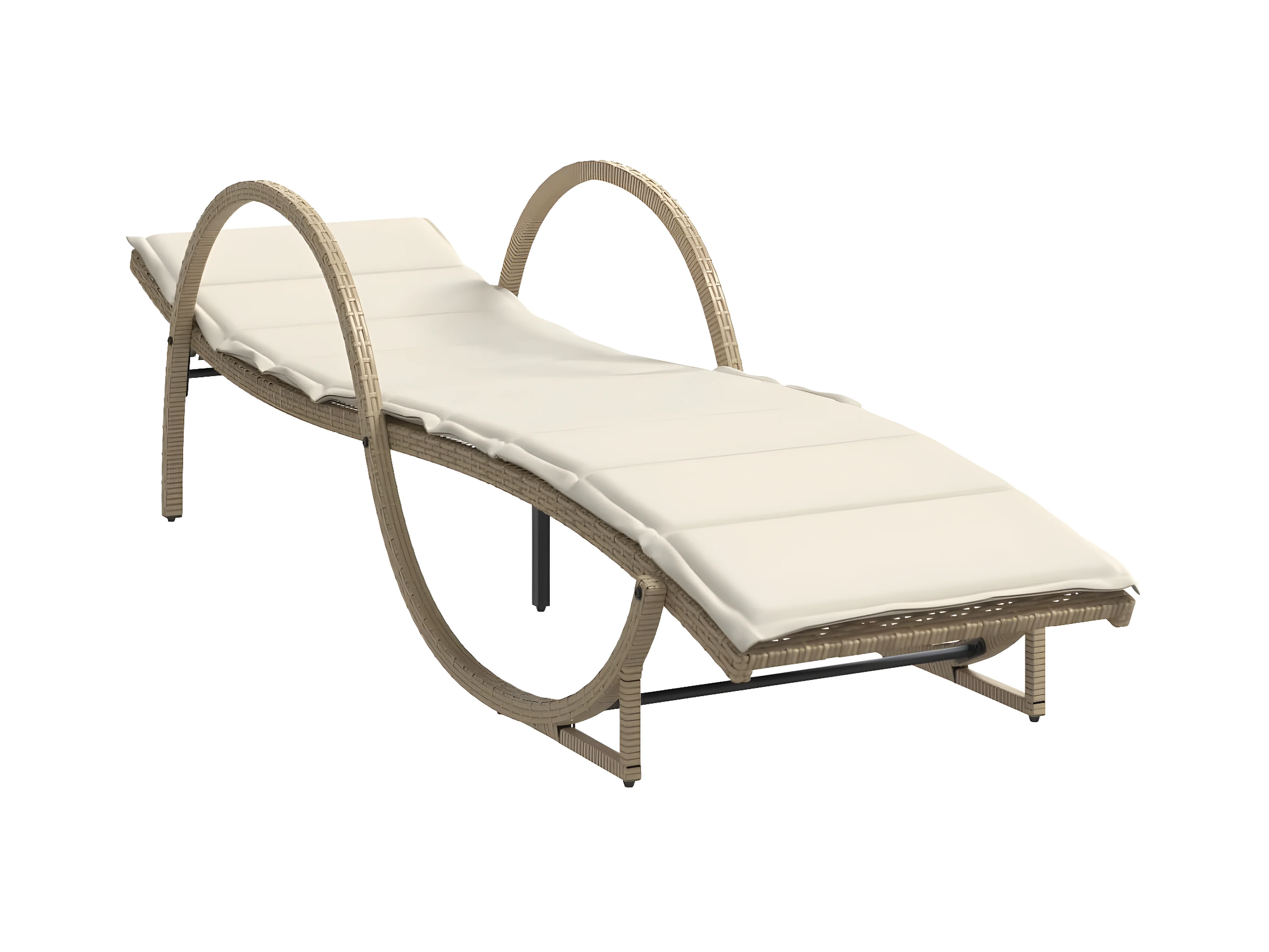 Bain de soleil avec coussin beige 60x199x42 cm résine tressée FR77303