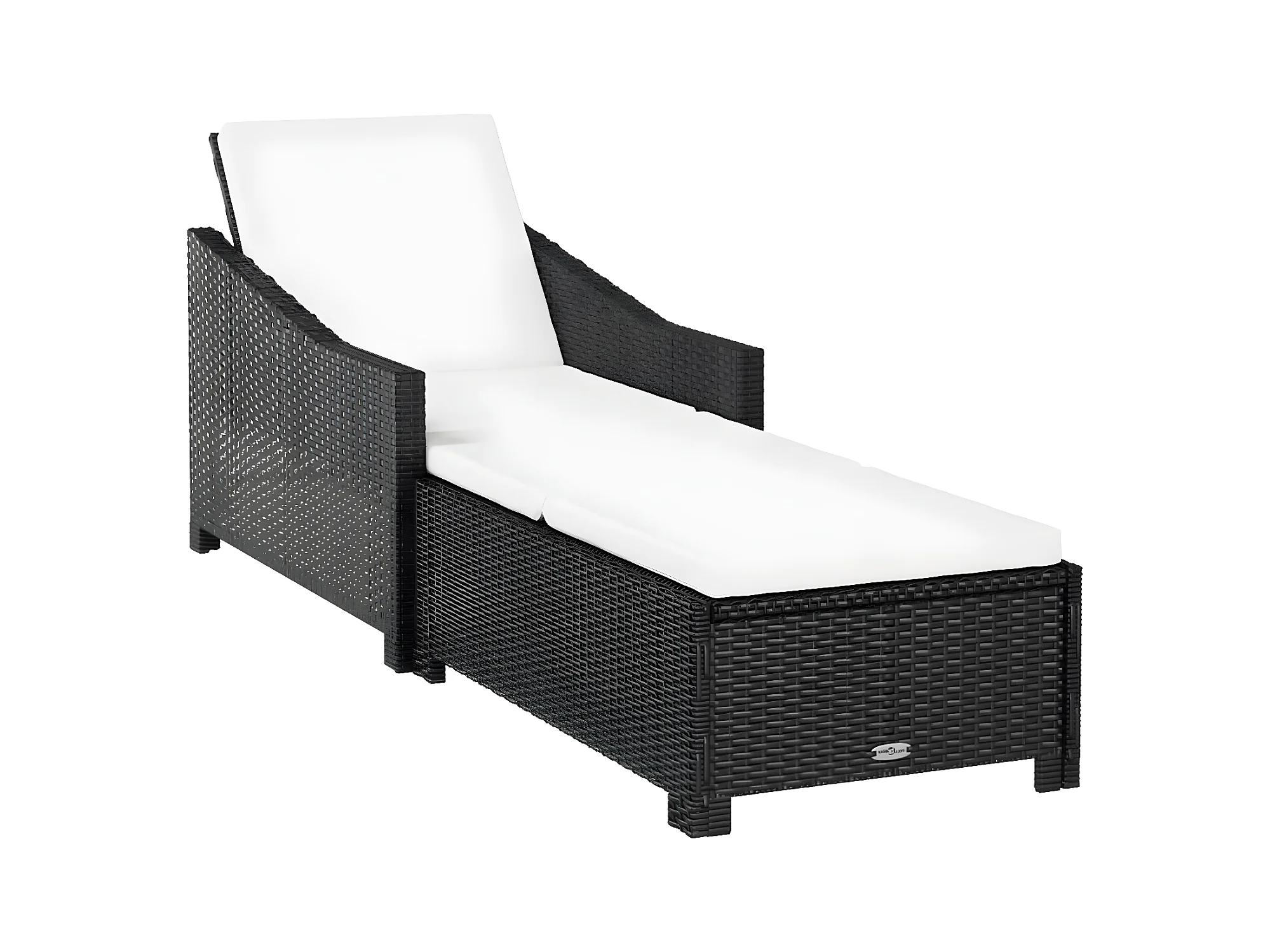 Bain de soleil avec coussin blanc crème Résine tressée Noir SEF64777
