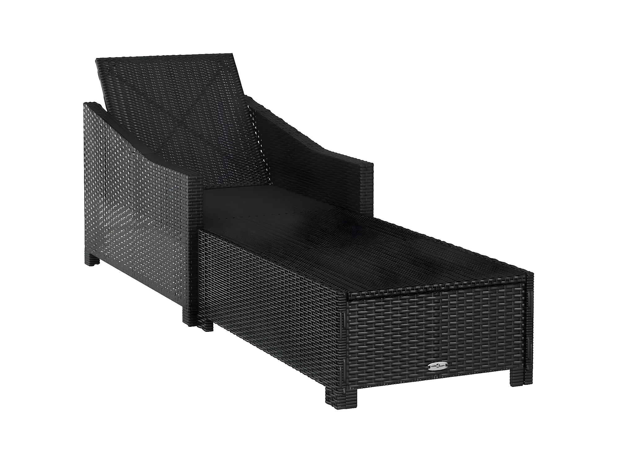 Chaise longue avec coussin noir 60x205x73 cm résine tressée