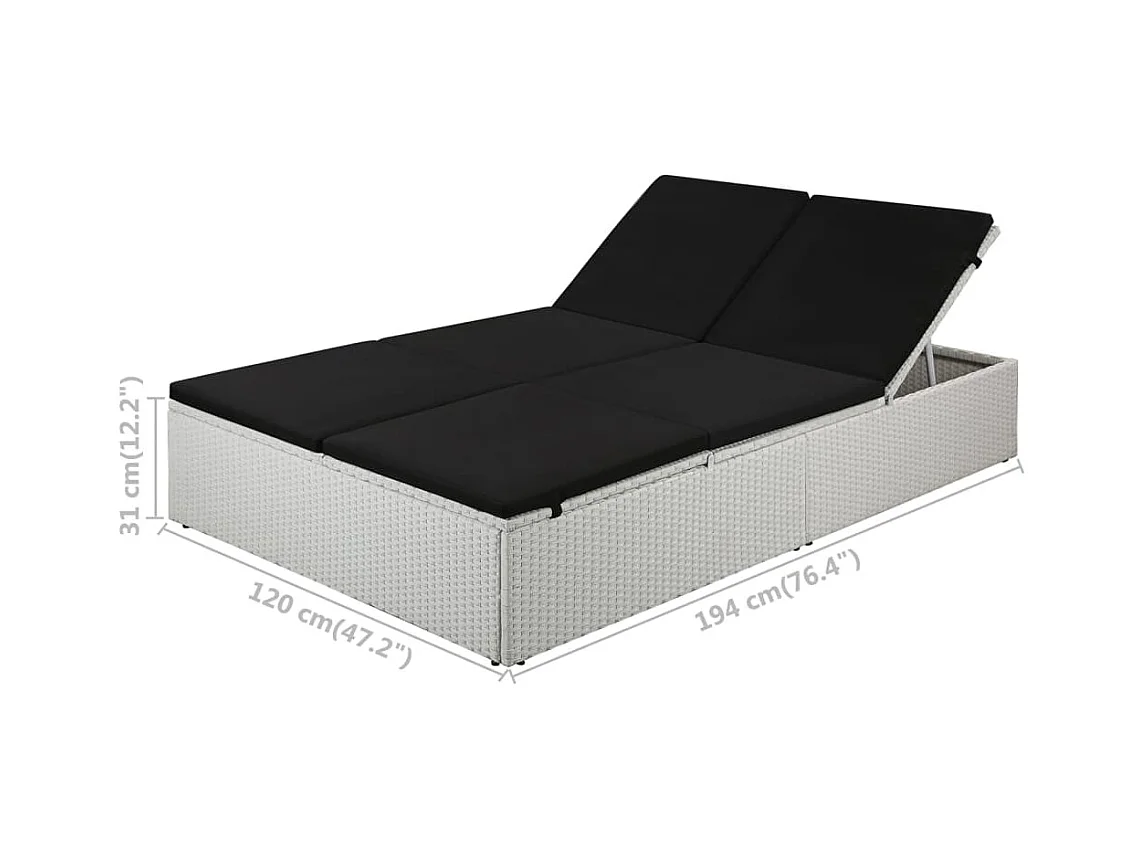 Bain de soleil avec coussin Résine tressée Noir SEF49668