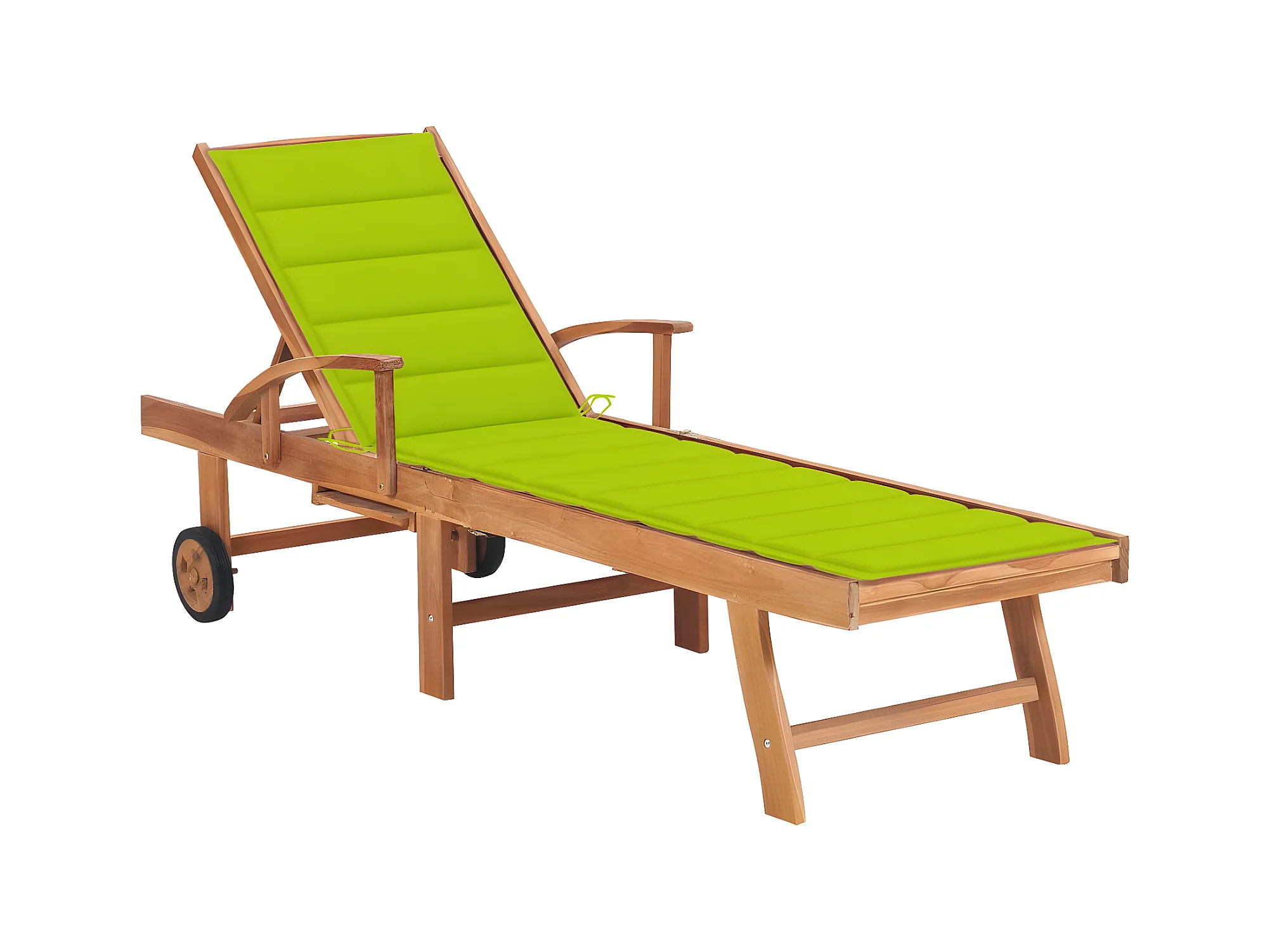 Bain de soleil avec coussin vert vif Bois de teck solide PEWV47309