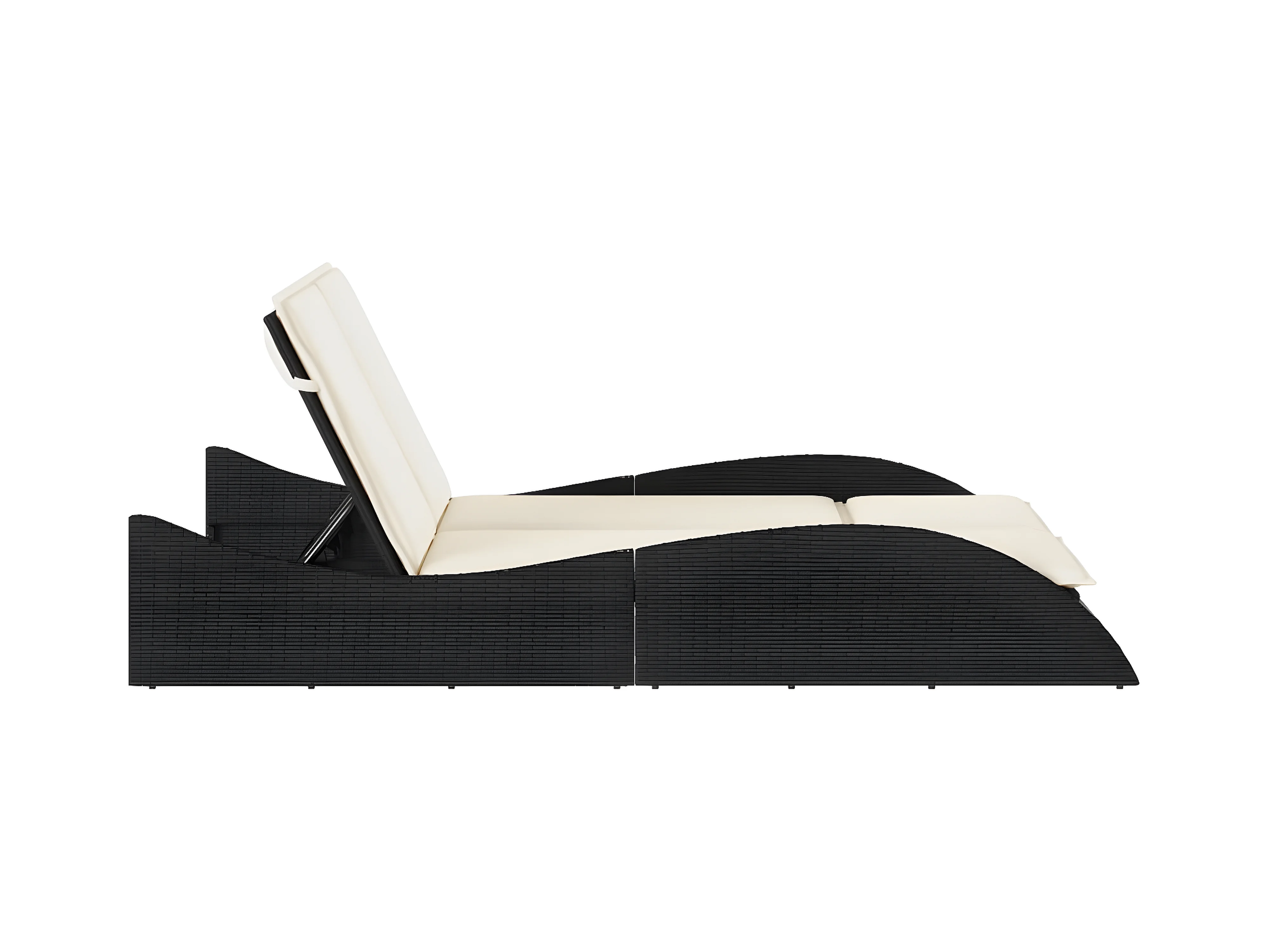 Bain de soleil avec coussin noir 63x200x81 cm résine tressée FR76302