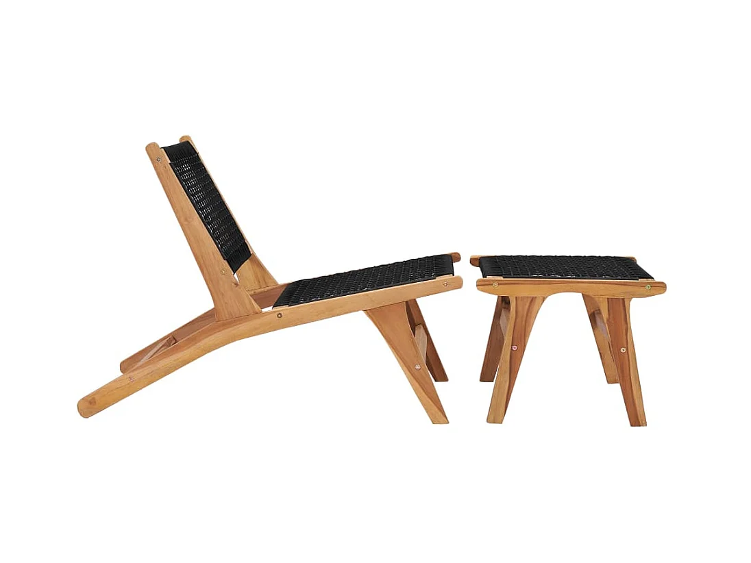 Bain de soleil avec repose-pied Bois de teck solide et corde SEF58759