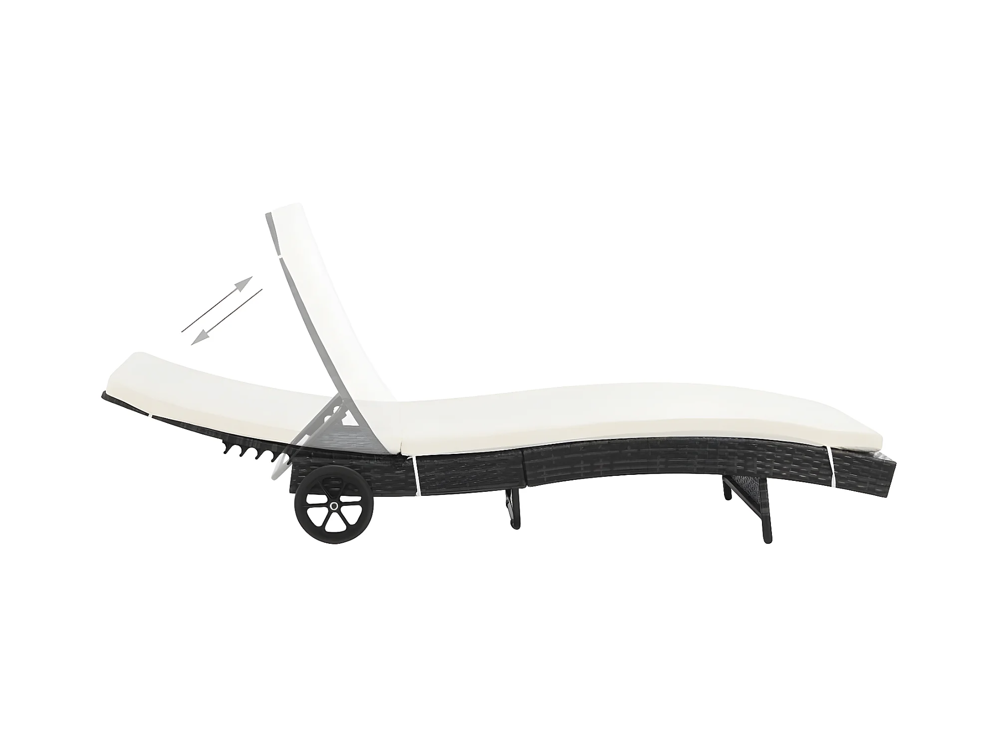 Bain de soleil avec coussin et roues Résine tressée Noir SEF80648