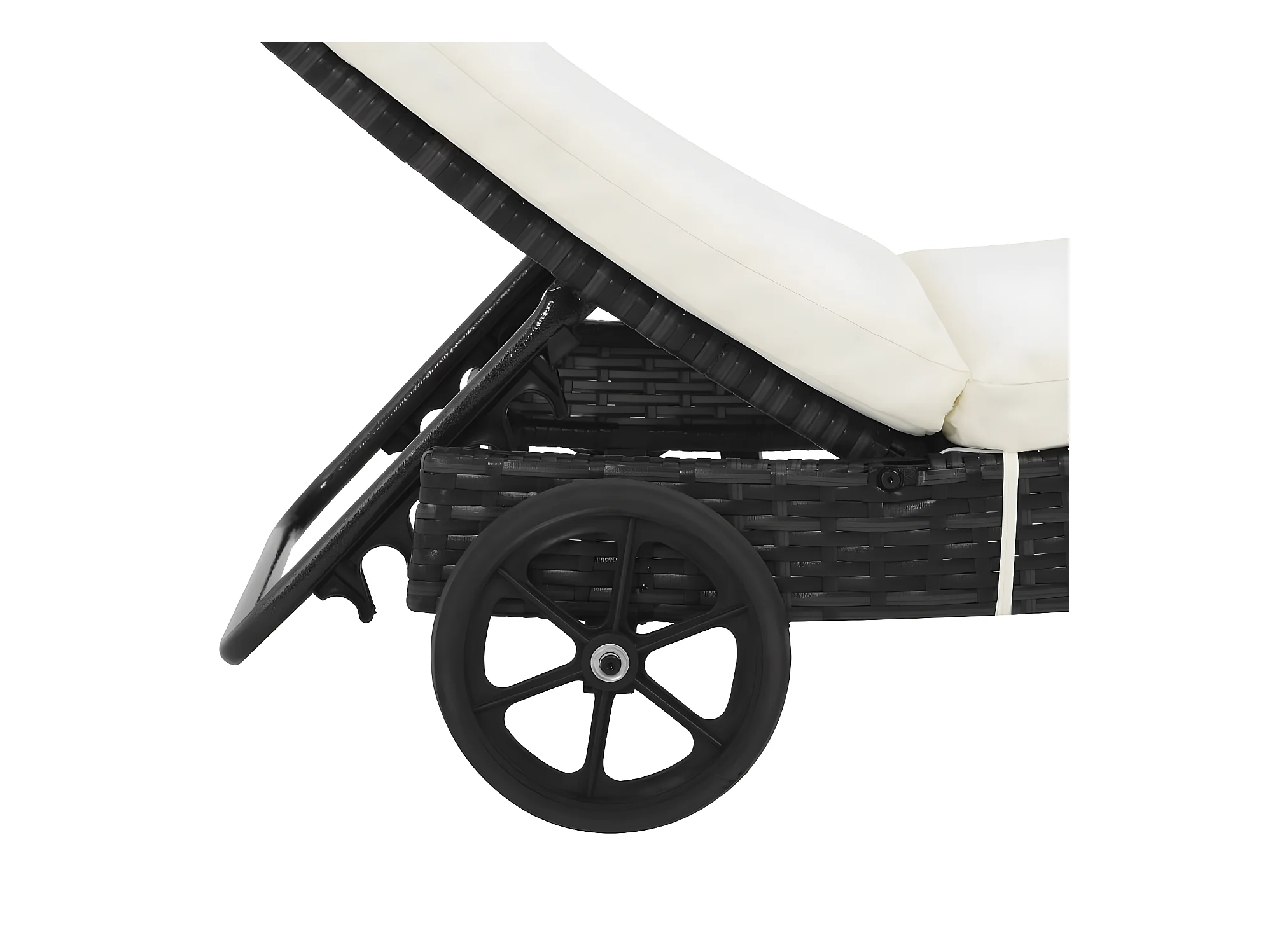 Bain de soleil avec roues et coussin Résine tressée Noir SEF48401