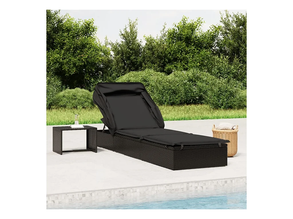 Bain de soleil avec toit pliable noir 213x63x97 cm résine tressée REO40252