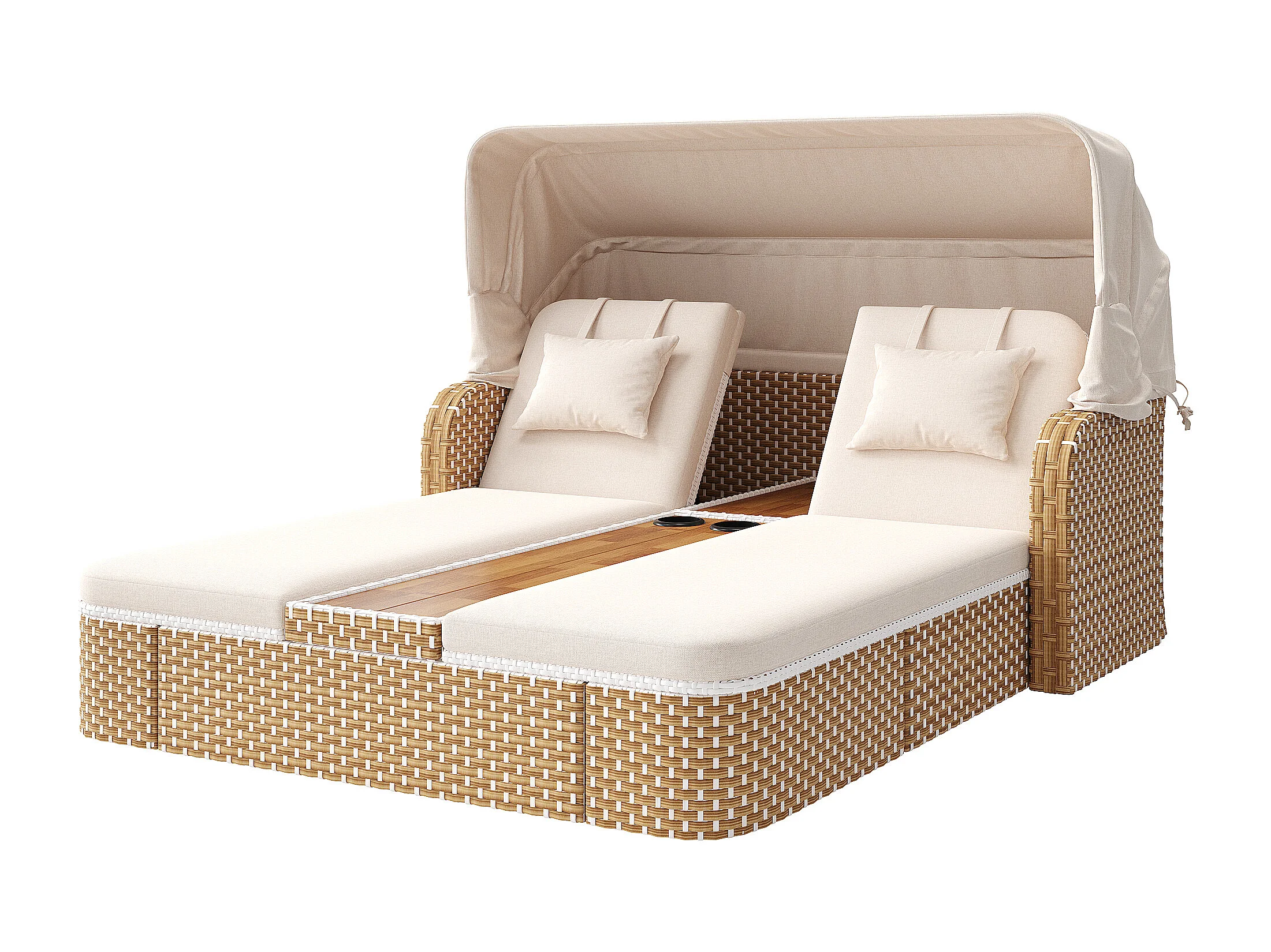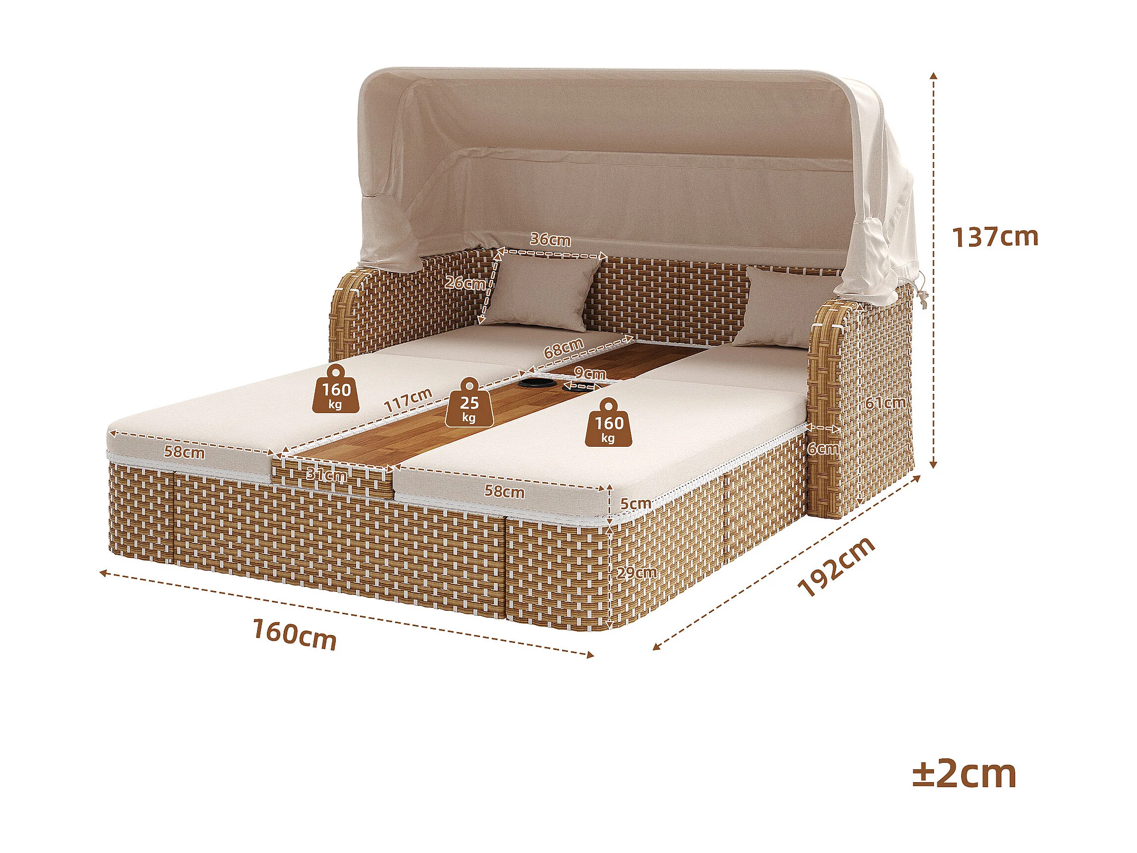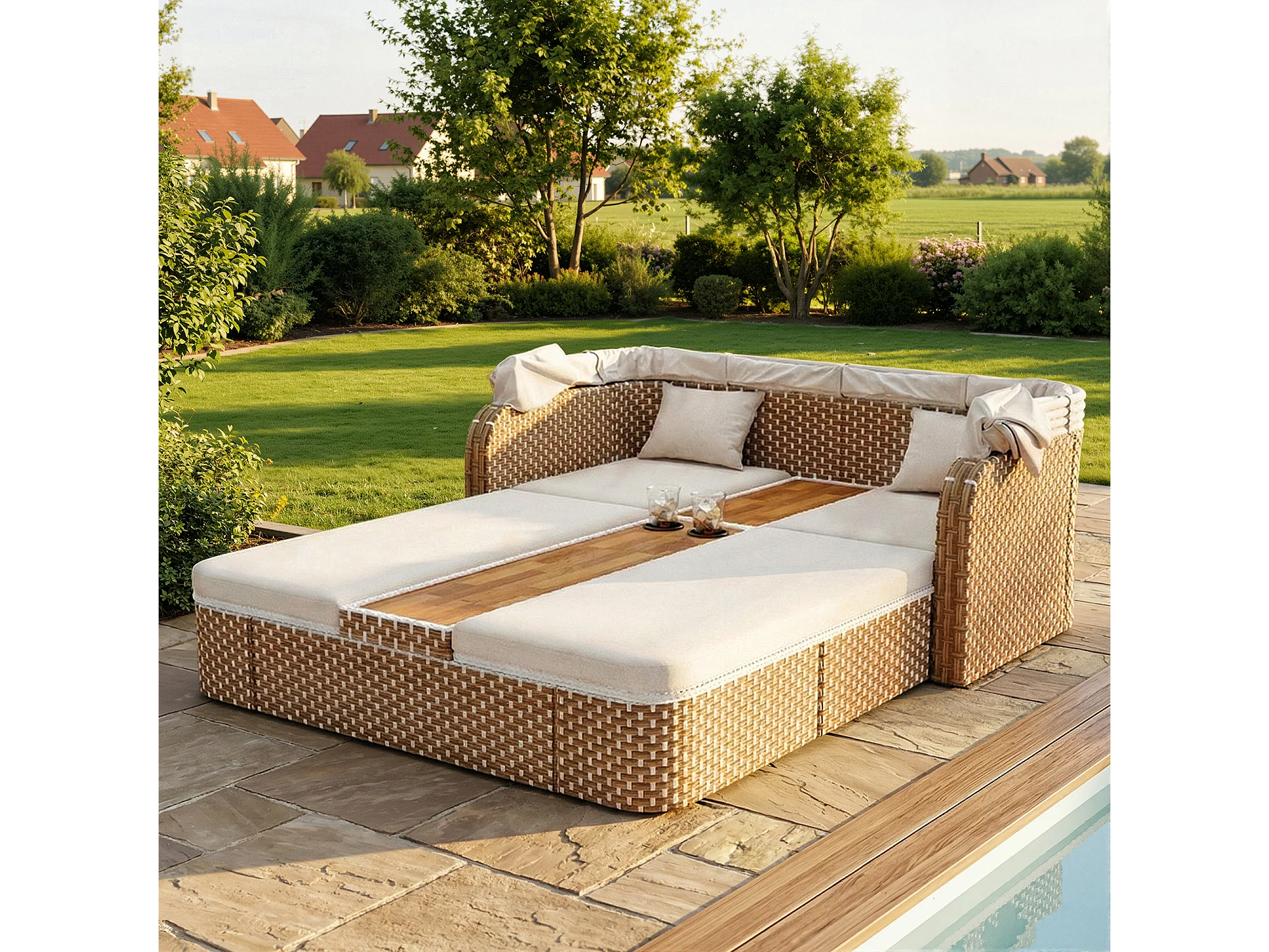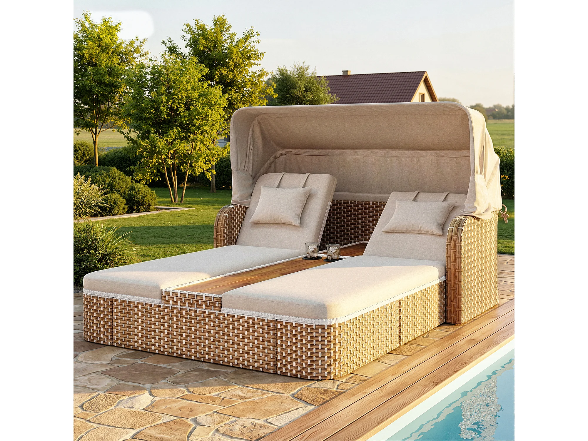 Bain de soleil de jardin avec parasol - fauteuil relaxant - Îlot de jardin en rotin avec auvent - métal - beige