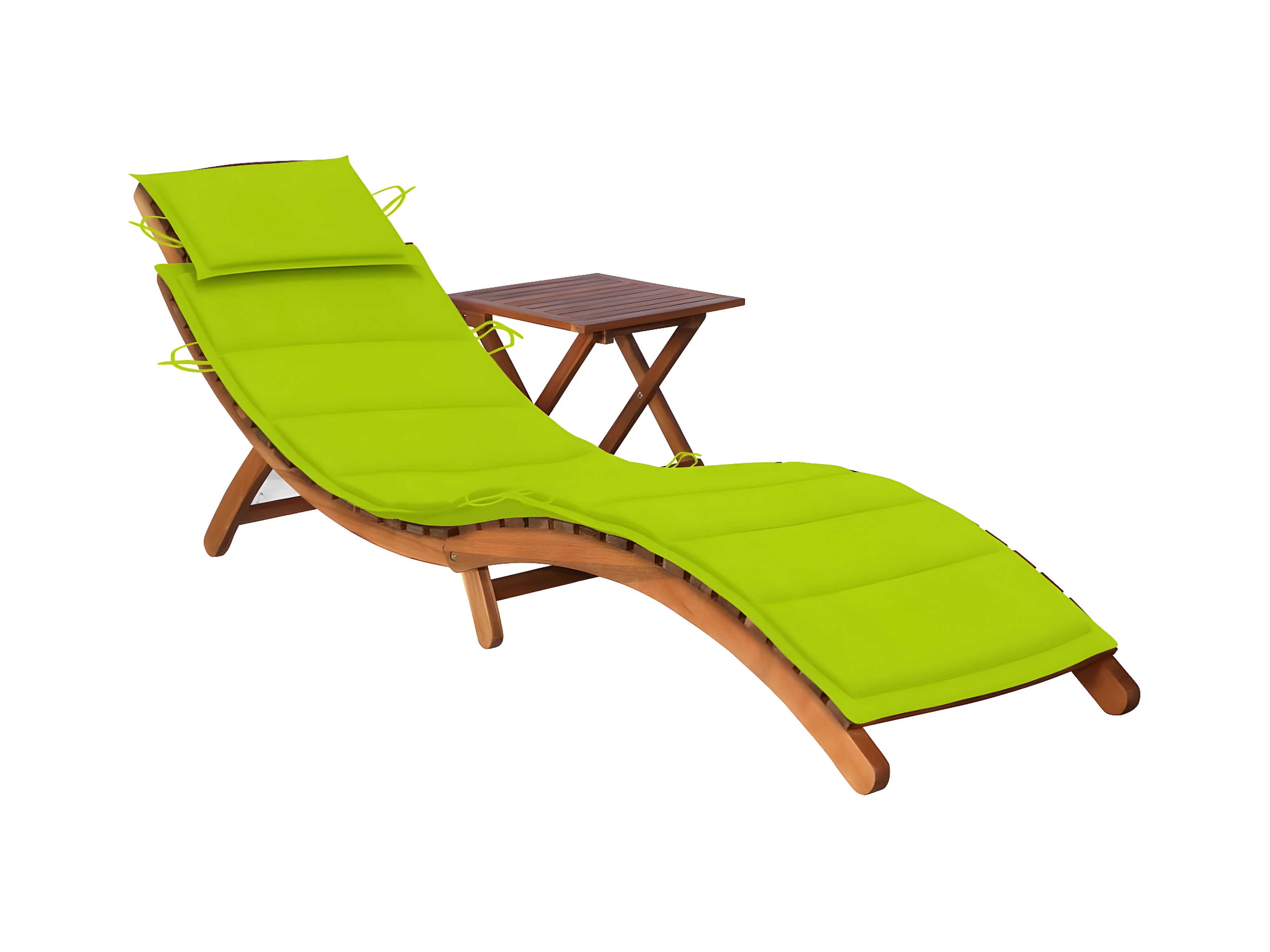 Bain de soleil de jardin avec table et coussin Bois d'acacia FR38271