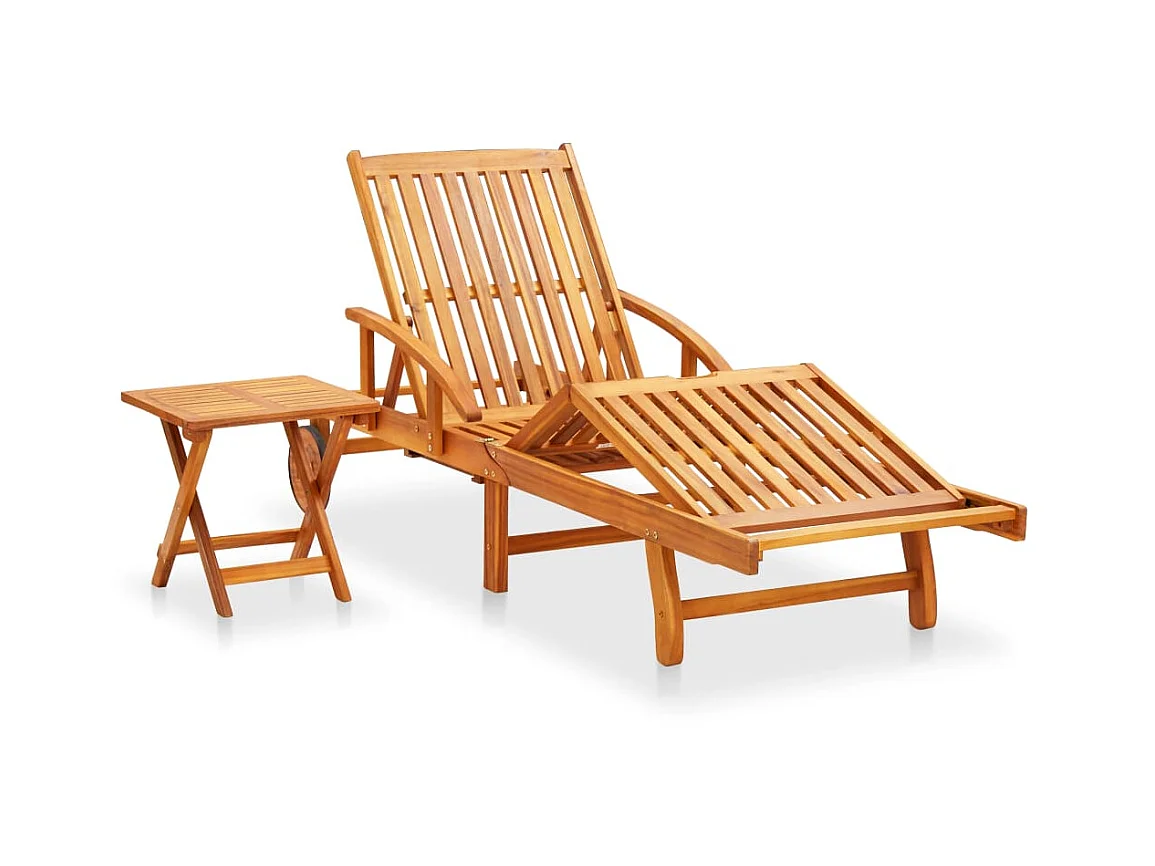 Bain de soleil de jardin avec table et coussin Bois d'acacia SEF97059
