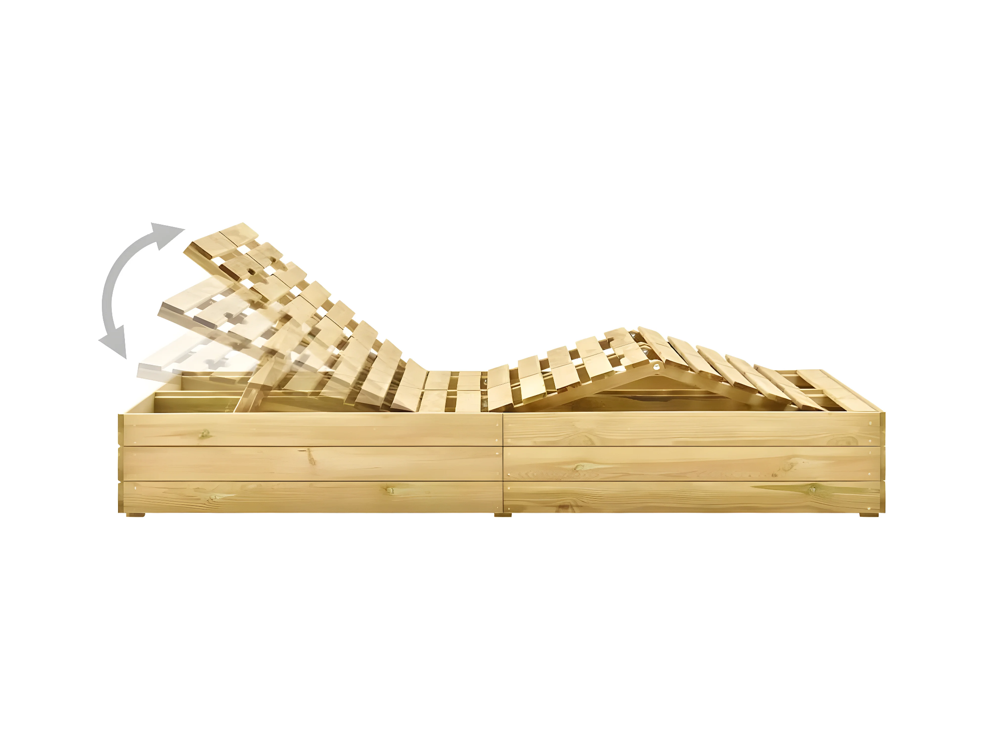 Bain de soleil double avec coussins Bois de pin imprégné FR30045