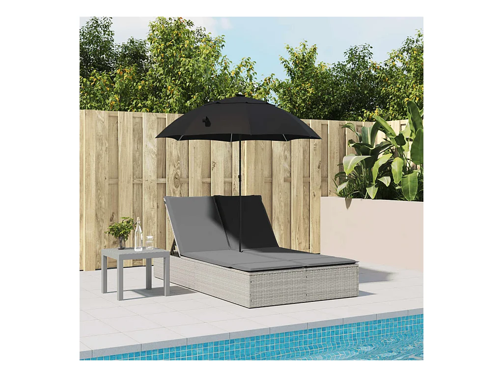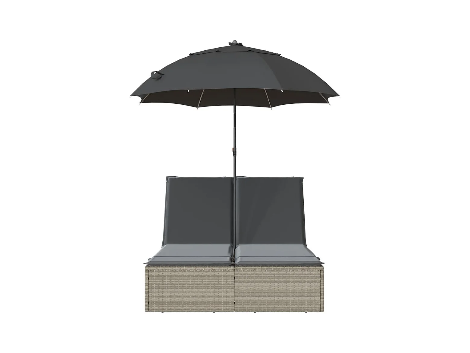 Bain de soleil double avec coussins et parasol gris clair rotin FR567020