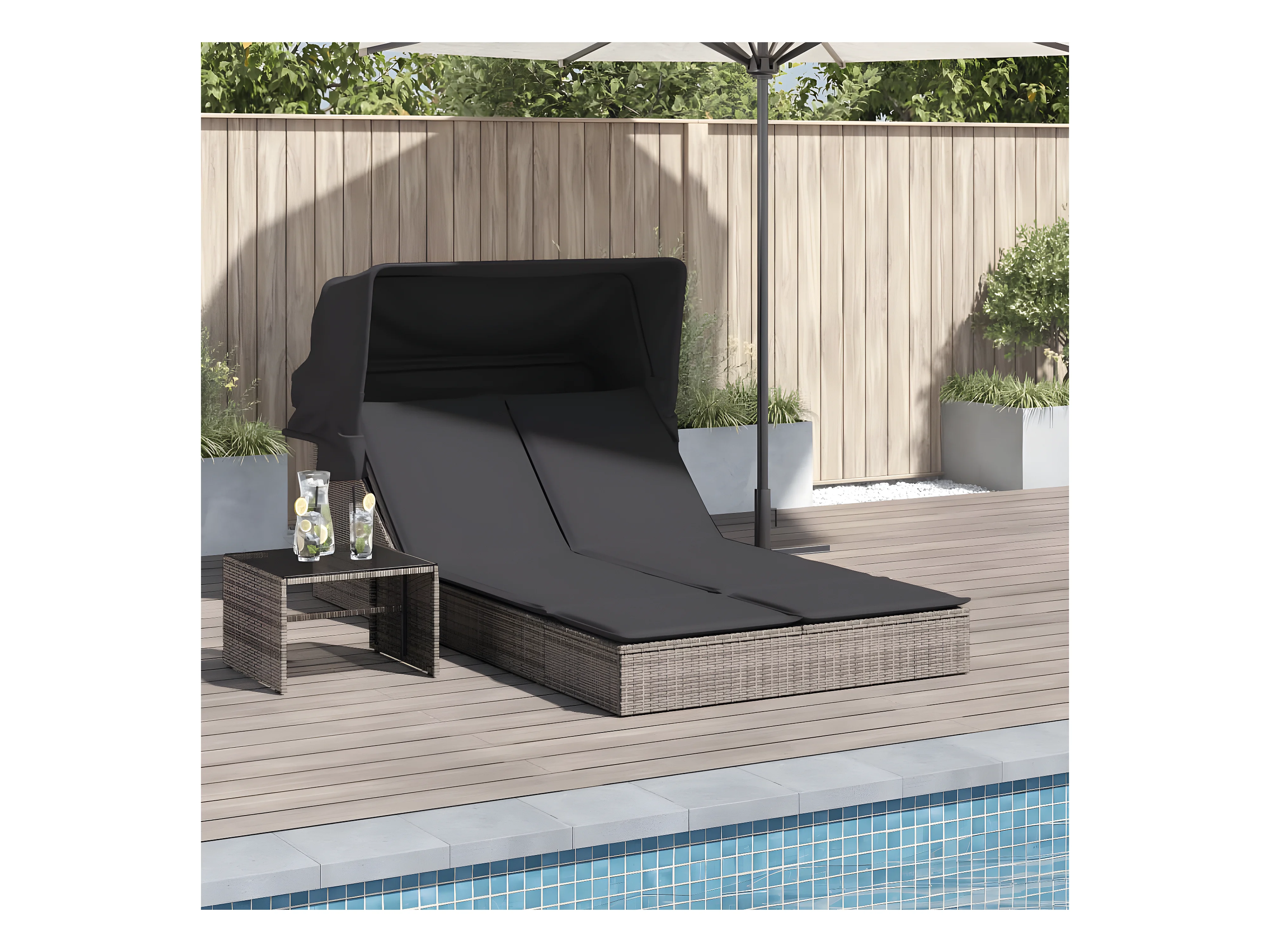 Bain de soleil double et auvent et coussins gris résine tressée FR10998