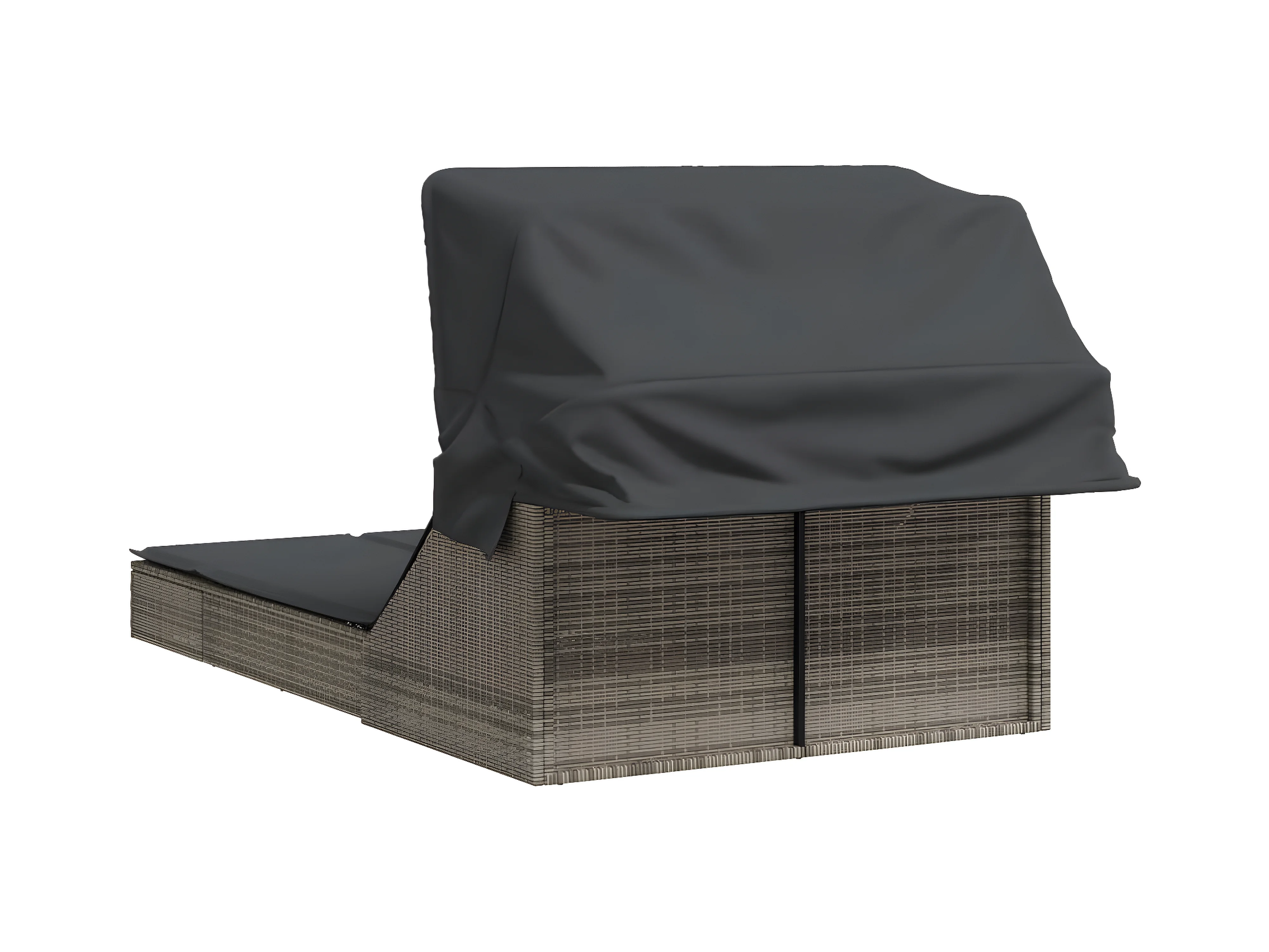 Bain de soleil double et auvent et coussins gris résine tressée FR32662