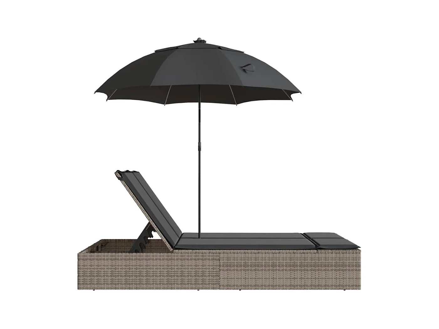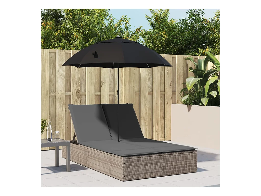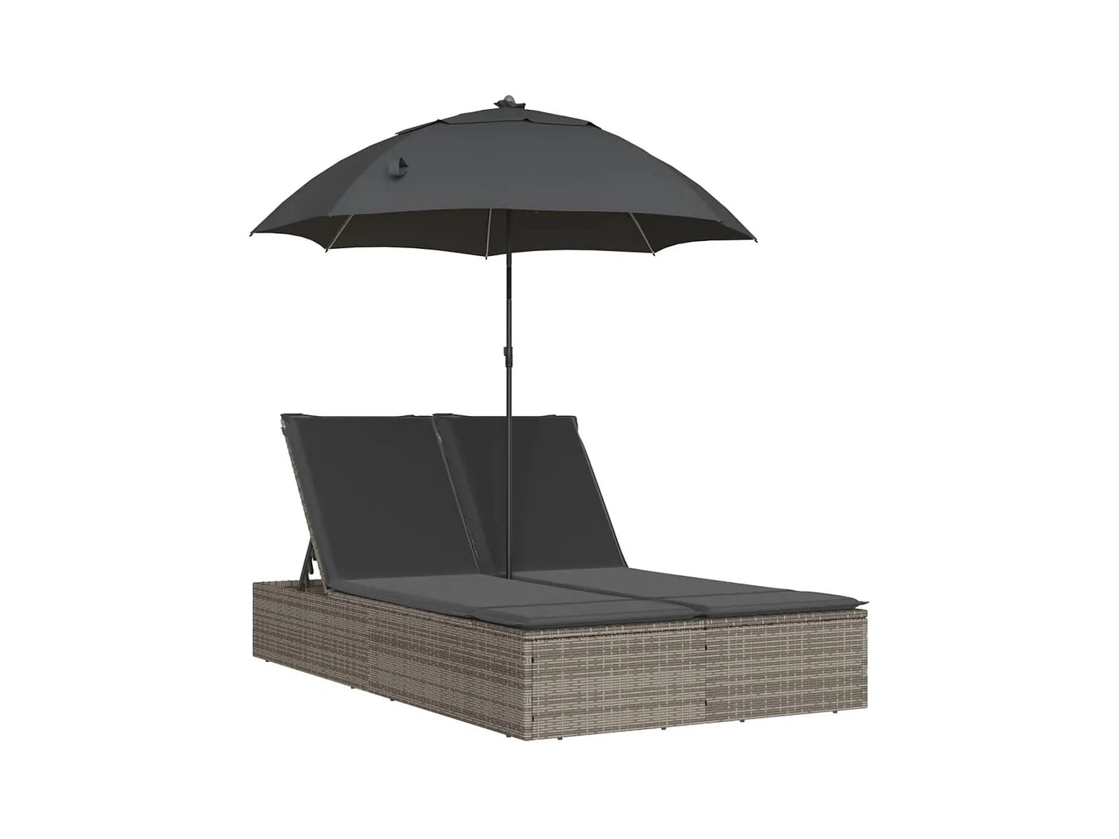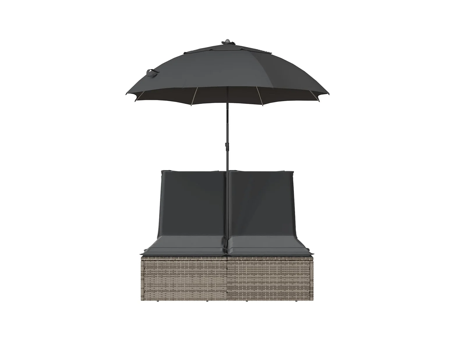Bain de soleil double avec coussins et parasol gris clair rotin FR567020