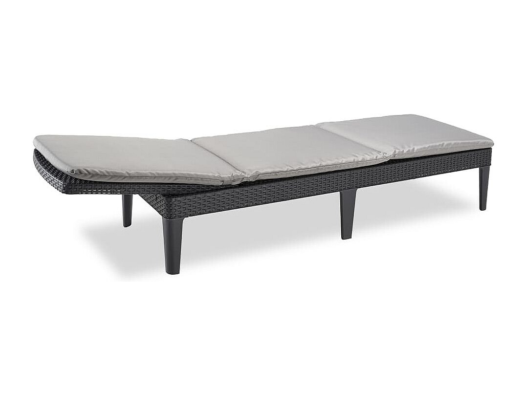 Chaise longue avec coussin gris résine tressée